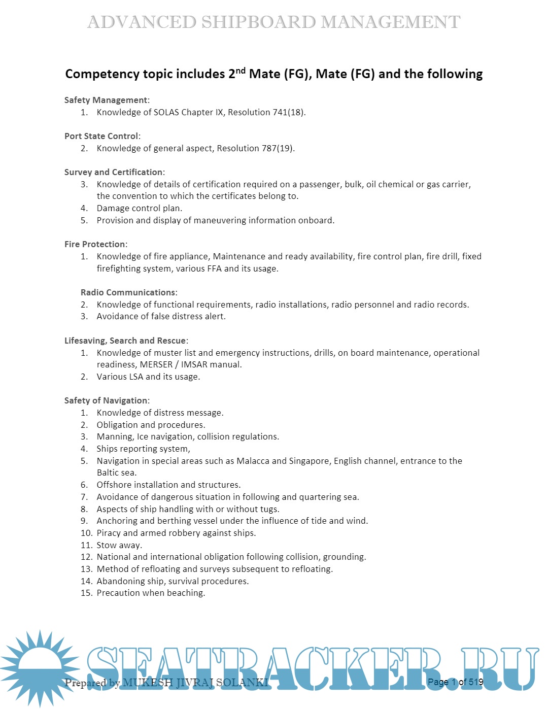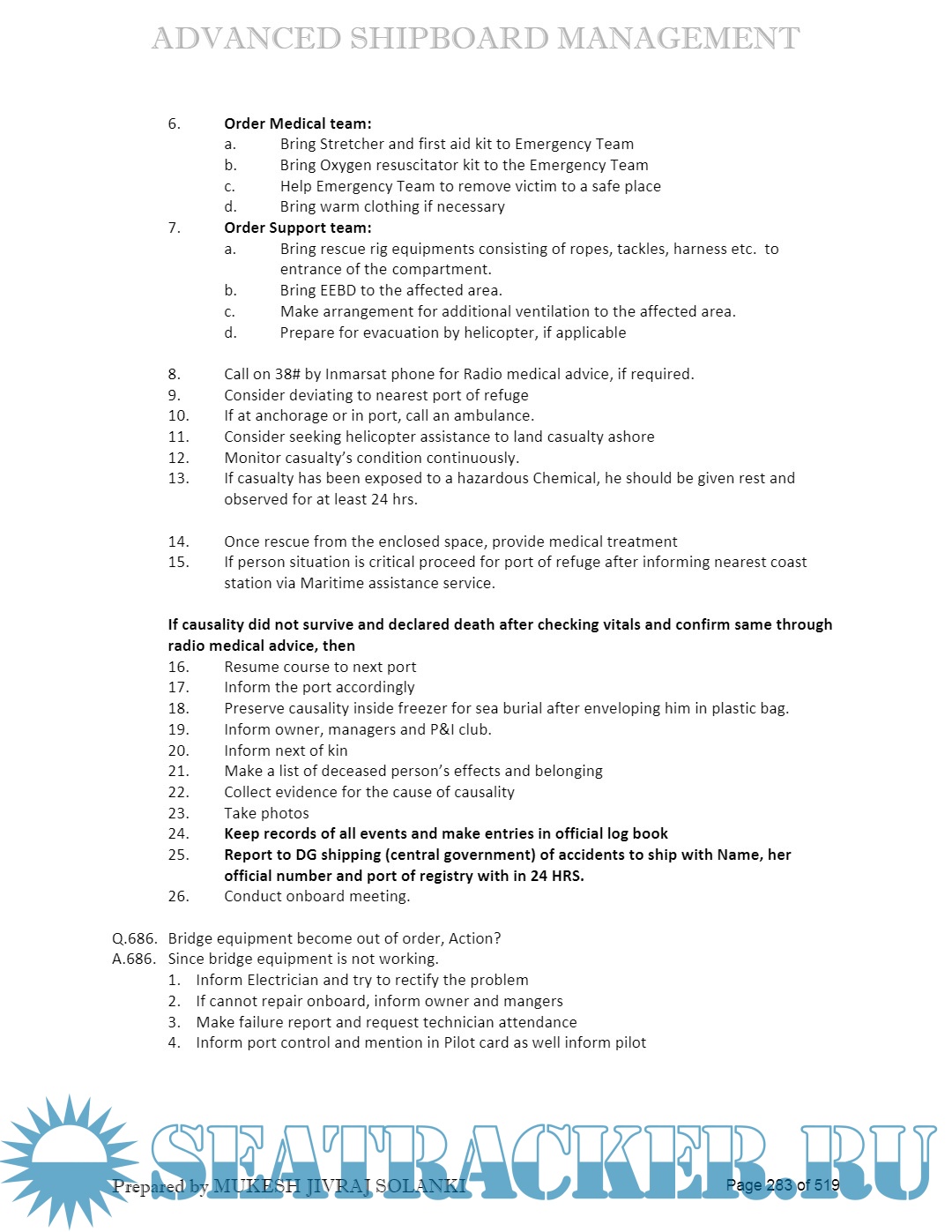 Description: Advanced Shipboard Management (ASM) Question & Answers sets for Oral Exams of M.M.D.(Mercantile Marine Department) - D.G. Shipping, India