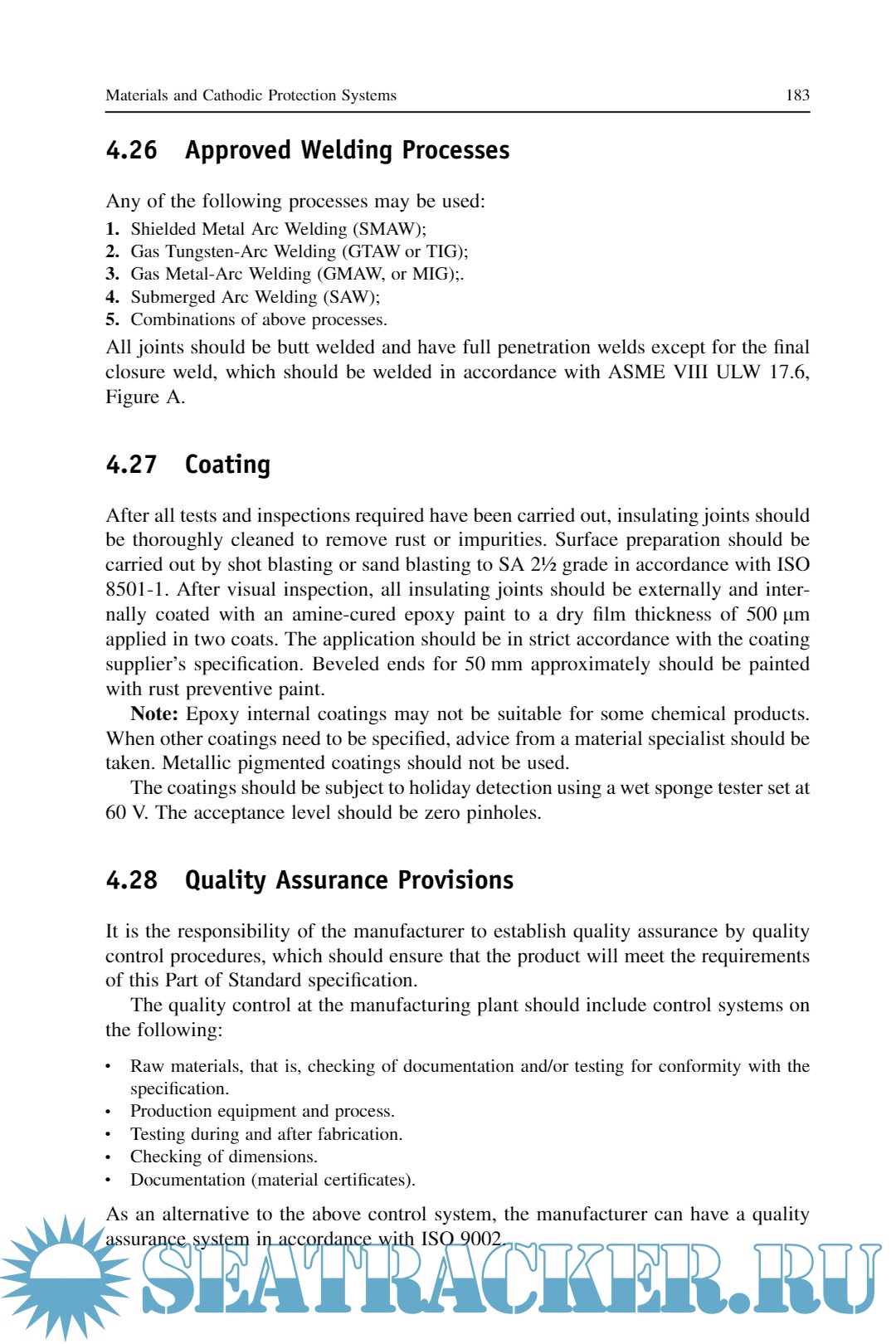 Year: 2014 Language: English Author: A Guide for Oil and Gas Industries Genre: Textbook ISBN: 978-0-12-800274-2 Format: PDF Quality: eBook Pages count: 466 Description: This engineering book covers the minimum requirements for anodes (high- silicon iron, graphite, magnetite) for use in impressed current CP systems. It specifies the composition, materials, manufacture, properties, inspection, and testing for high-silicon iron, graphite, and magnetite anodes. Moreover, this book revised survey requirements to ascertain that corrosion control systems installed on buried or submerged structures are properly designed, operated, and effectively maintained. This book also provides information concerning techniques, equipment, measurements, and test methods used in field application. It deals with inspection of coatings in conjunction with CP for its efficiency on current distribution.