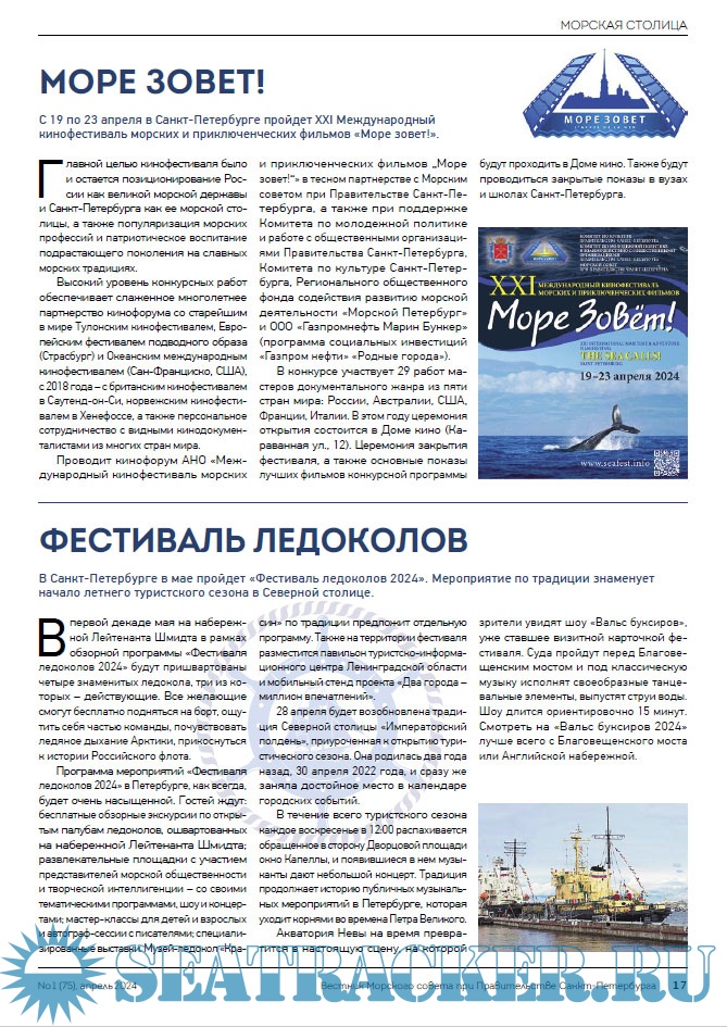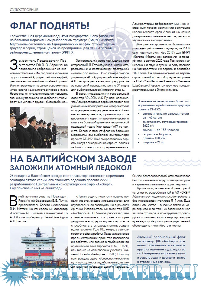 Описание: Целью информационного печатного издания является информационное освещение всех направлений морской деятельности Санкт-Петербурга: морской и речной транспортной деятельности, военно-морской деятельности, деятельности по эксплуатации портовой инфраструктуры, судостроения, деятельности по обеспечению экологической безопасности морского и речного судоходства, морского образования и науки, морского и речного туризма, парусного спорта и маломерного флота, деятельности по изучению, освоению и использованию Мирового океана и многое другое.