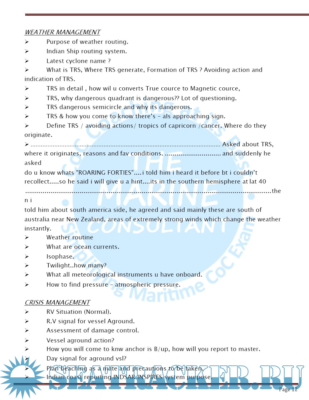 Description: Orals Question Bank for Chief Mate F.G. Mercantile Marine Department (MMD), India Examinations.
