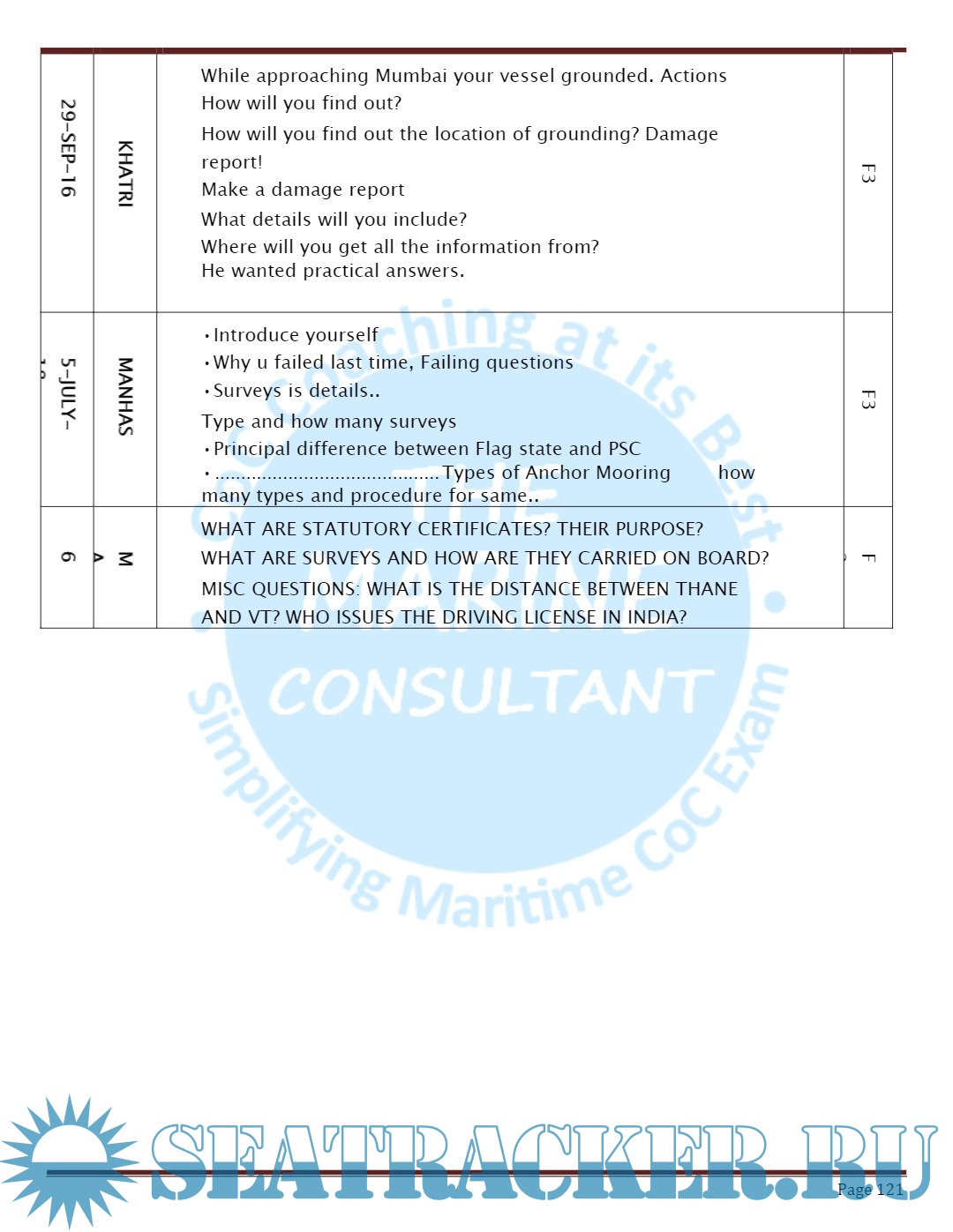 Orals Question Bank (August 2018) for Chief Mate F.G. Mercantile Marine Department (MMD), India Examinations
