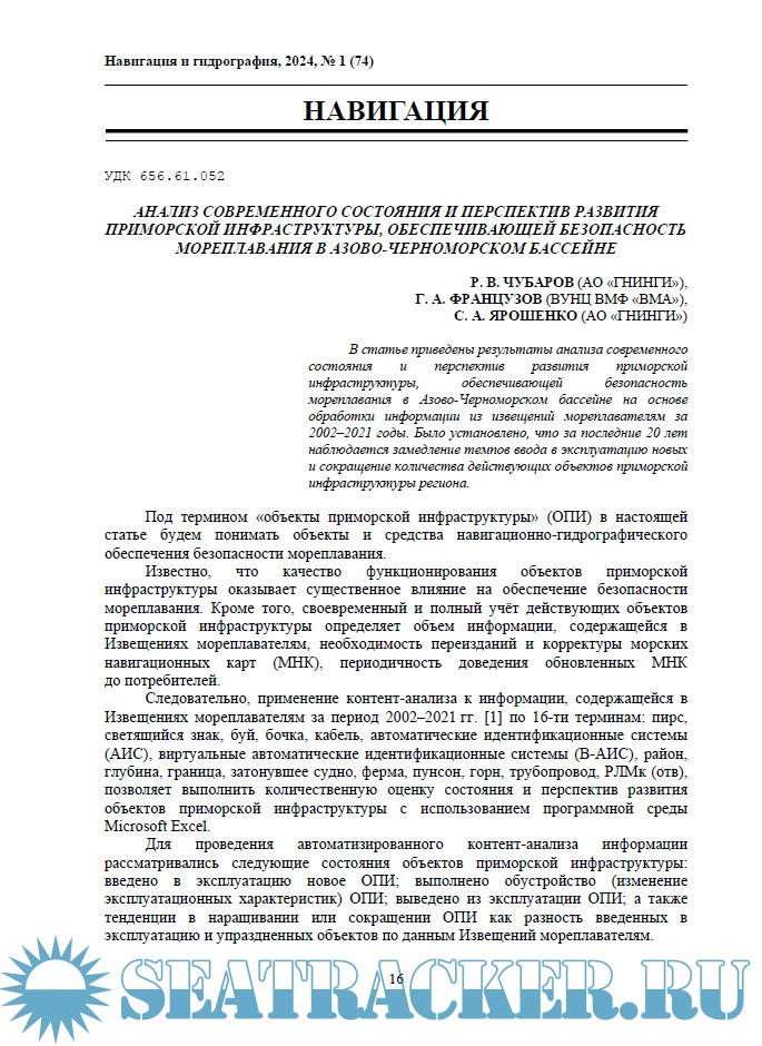 Год выпуска: 2024 Язык: Русский Автор: группа авторов Жанр: Периодическое издание (журнал) Формат: PDF Качество: Изначально компьютерное (eBook) Количество страниц: 116 Описание: «Навигация и гидрография» - Журнал издаётся Государственным научно-исследовательским навигационно-гидрографическим институтом с 1995 года. В издании публикуются результаты исследований в области навигации, гидрографии, океанографии, гидрометеорологии, морской картографии, морской геофизики и экологии, освещаются передовые технические достижения в указанных областях.