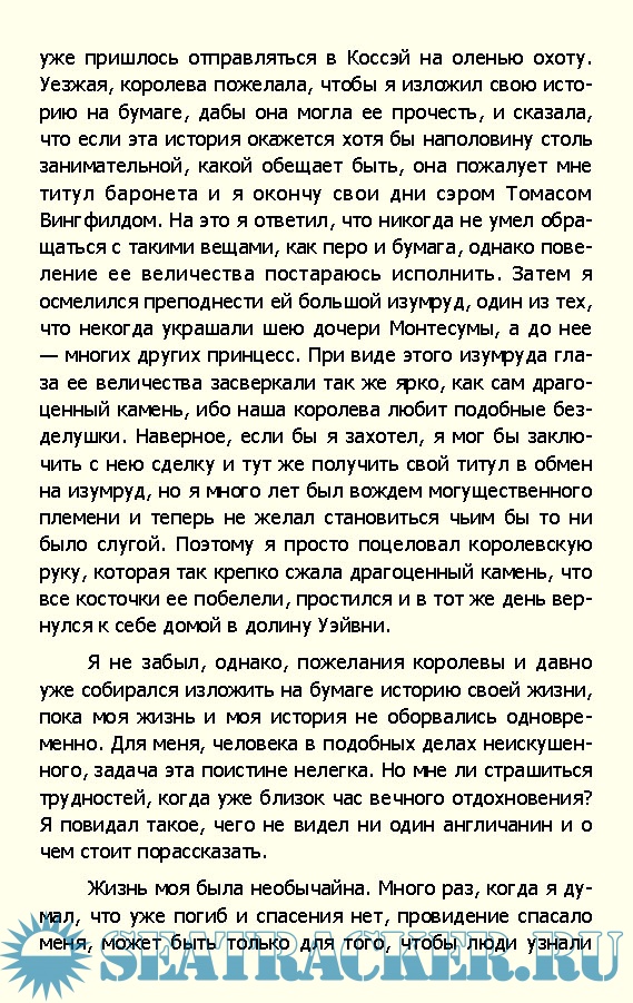 Год выпуска: 1992 Язык: Русский Автор: Хаггард Г. Р. Жанр: Художественная литература Издательство: Маяк Издание: Морская библиотека Формат: FB2 Качество: Изначально компьютерное (eBook) Количество страниц: 558 Описание: В основу одного из лучших приключенческих романов известного английского писателя легли исторические события эпохи великих морских географических открытий и завоеваний. Герой произведения Томас Вингфилд, от имени которого ведется повествование, пишет свои `воспоминания` сразу же после разгрома `Непобедимой армады` - флота католической Испании. Рассказывая историю своей необычайной жизни, Томас Вингвилд переносится во времена своей юности, наполненной страстями, битвами и невероятными приключениями