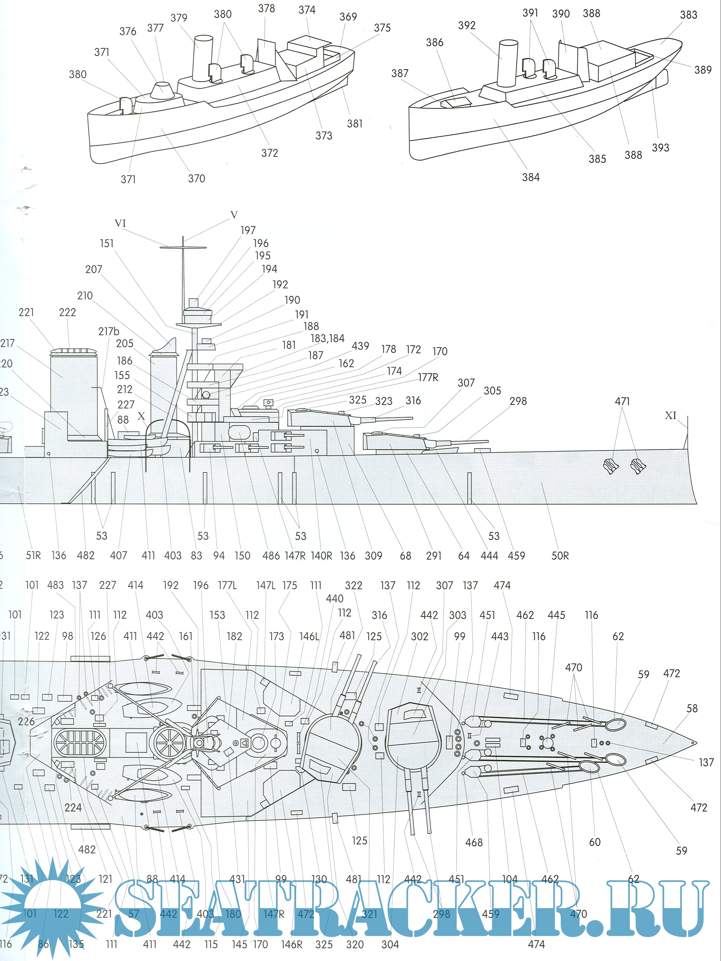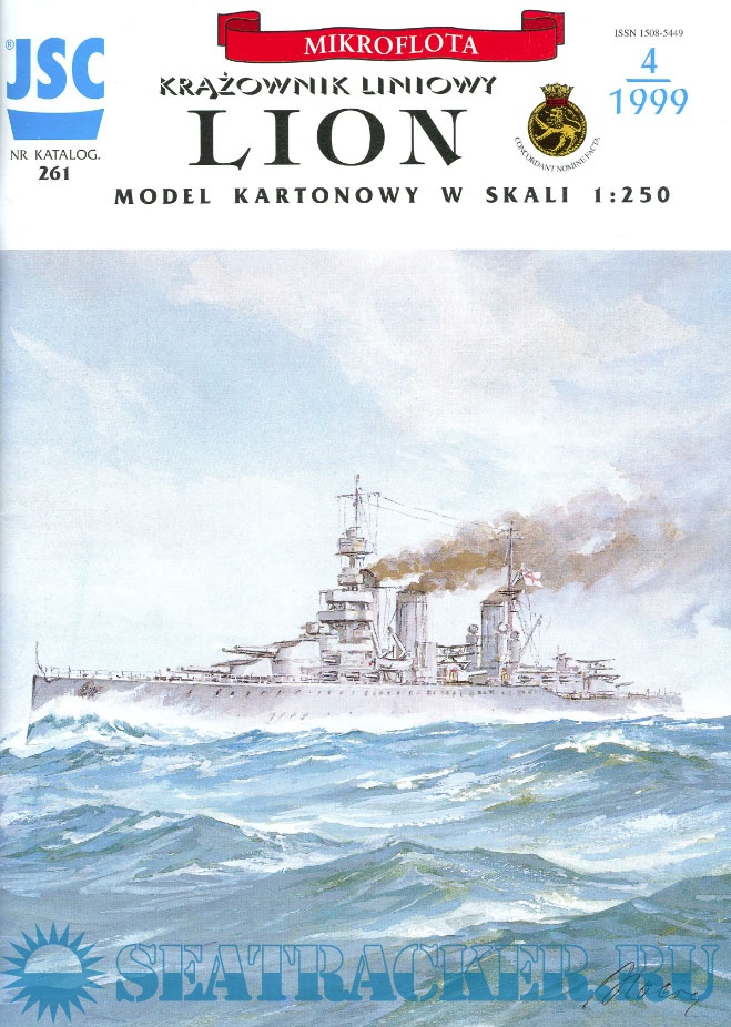Описание: 33 листа цветных выкроек и инструкций для изготовления бумажной модели линейного крейсера HMS "LION" (Великобритания) по состоянию на 1918 год в масштабе 1:250