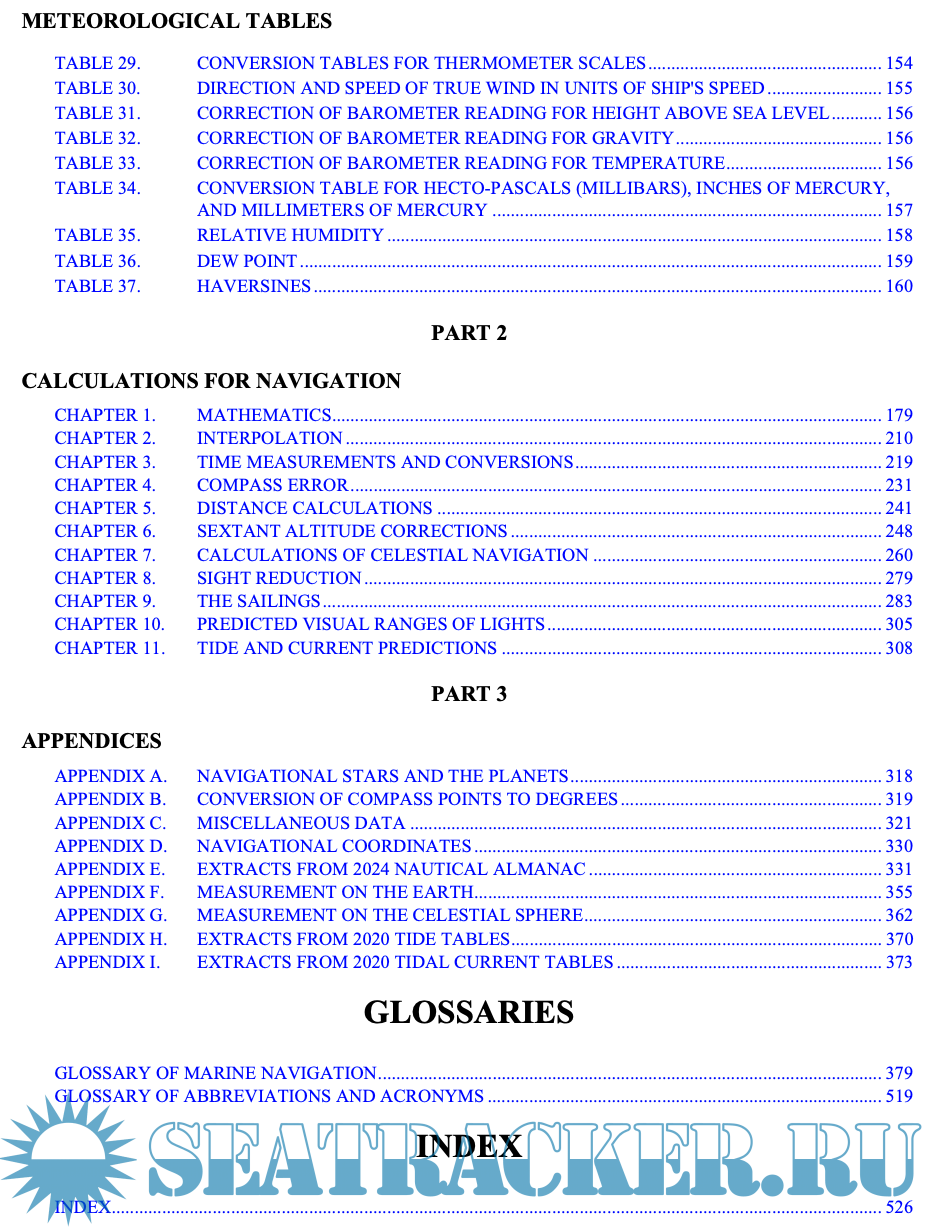 Year: 2024 Language: English Author: Nathaniel Bowdicht (Dr. Gerard J. Clifford, Jr. Editor) Genre: Handbook Publisher: NGA Edition: 2024 Format: PDF Quality: eBook Pages count: 1358 Description: As much as it is a part of history, Bowditch is not a history book. In this edition, as in past editions, dated material was dropped and new methods, technologies and tech- niques added to keep pace with changes in the practice of navigation. The changes are intended to ensure Bowditch remains the premier reference work for modern, practical marine navigation. This edition replaces but does not cancel former editions, which may be retained and consulted as to historical navigation methods not discussed herein. PART 1, FUNDAMENTALS, includes an overview of the topic of marine navigation and the organizations which develop, support and regulate it. These fundamentals include chapters relating to geodesy and chart datums; modern hydrography; the types, structure, use and limita- tions of nautical charts; electronic chart display and infor- mation systems; and finally a concise explanation and sum- mary of the various navigational publications necessary for prudent marine navigation. PART 2, PILOTING, mainly emphasizes the practical aspects of navigating a vessel in restricted waters, using both traditional and electronic methods. The closely related problems of finding the course & distance between one known point and another, and using The Sailings, are also discussed. P ART 3, CELESTIAL NA VIGA TION, reflects the renewed interest in the age old art and science of navigation by the stars, planets, moon and sun. The update recognizes the trend to over rely on GPS and electronic navigation by offering the tried and true alternative method in the event of electronic failures. P ART 4, INERTIAL NA VIGA TION, is often referred to as a sophisticated dead reckoning method. This section starts off with a discussion of gyroscopes and accelerome- ters. P ART 5, RF NA VIGA TION TECHNIQUES, explains the nature of radio waves and electronic navigation sys- tems. Chapters deal with several electronic methods of nav- igation--satellite, Loran, and Radar, with special emphasis on satellite navigation systems. PART 6, ALTERNATIVE NAVIGATION TECH- NIQUES, addresses the topic of bathymetric navigation. This comes in direct response to several Bowditch survey responses received by NGA. PART 7, NA VIGA TIONAL SAFETY , discusses recent developments in management of navigational resources, the changing role of the navigator, distress and safety communications, procedures for emergency naviga- tion, and the increasingly complex web of navigation regu- lations. PART 8, ICE AND POLAR NAVIGATION, in the Arctic is of renewed interest to the navigator as ice-free conditions allow shorter sailing distances. PART 9, OCEANOGRAPHY, has been updated to reflect the latest science and terminology. PART 10, MARINE METEOROLOGY, incorporates updated weather information and many new graphics. Additional info: Version of 2019 here in the tracker: