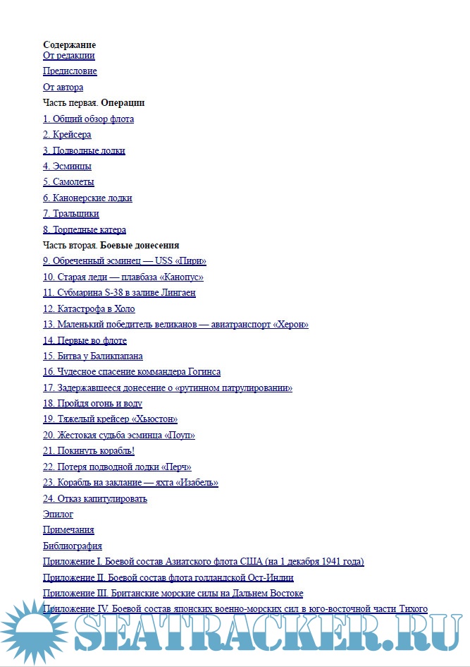 Описание: Книга рассказывает о событиях начального периода войны на Тихом океане. Исследование У. Уинслоу посвящено действиям Азиатского флота США — борьбе за Филиппины, отступлению в Голландскую Ост-Индию и последующей гибели во время падения Явы.