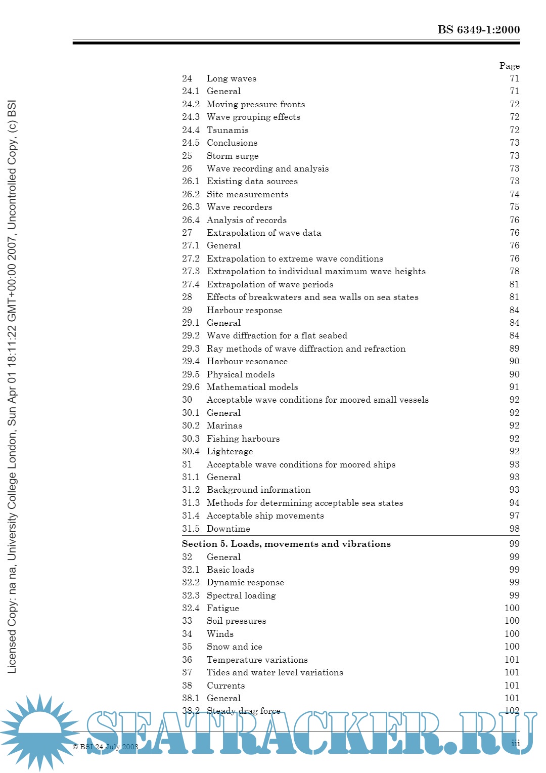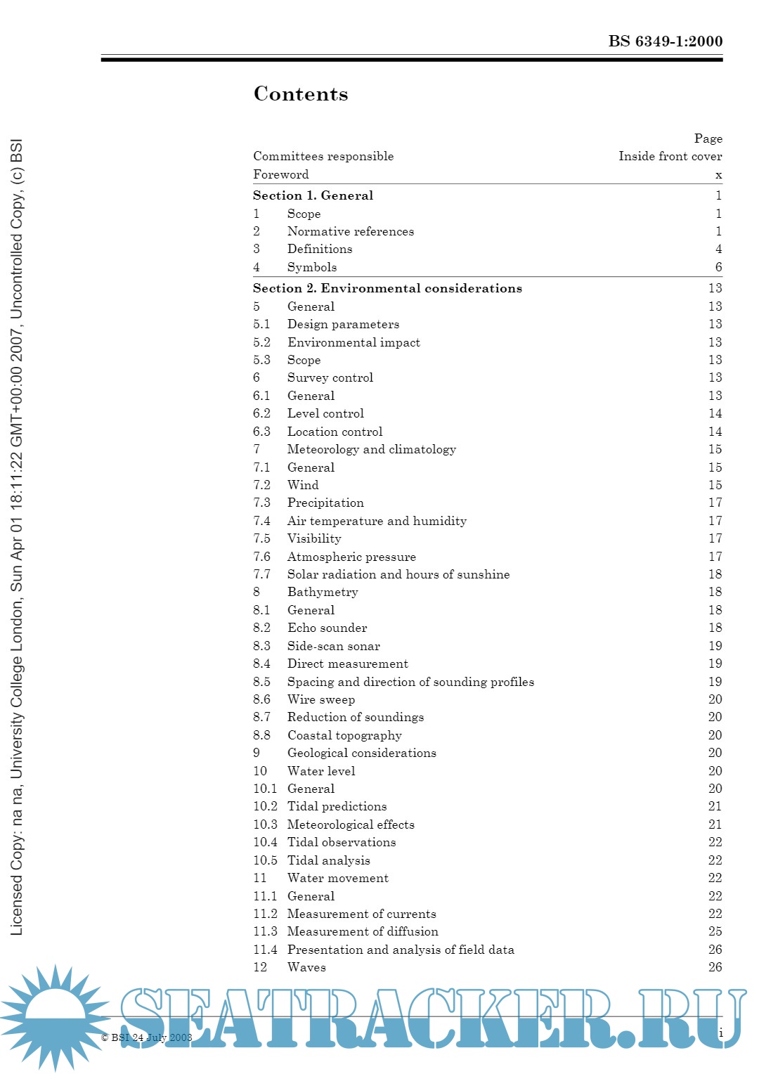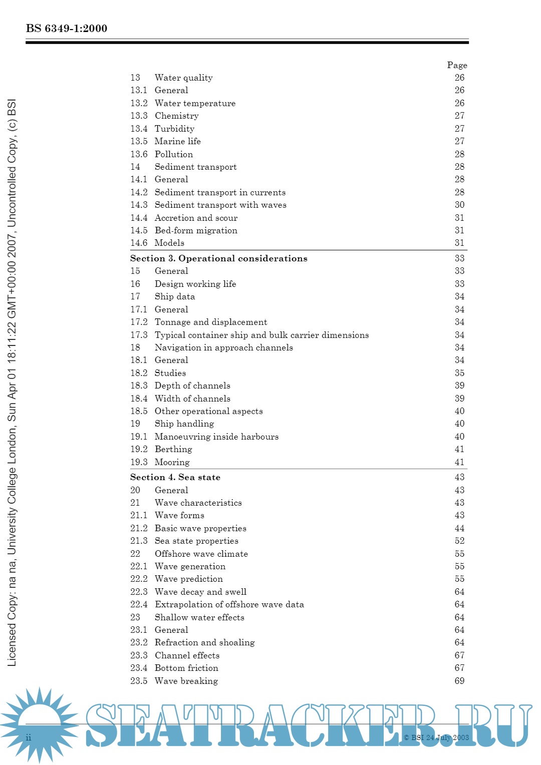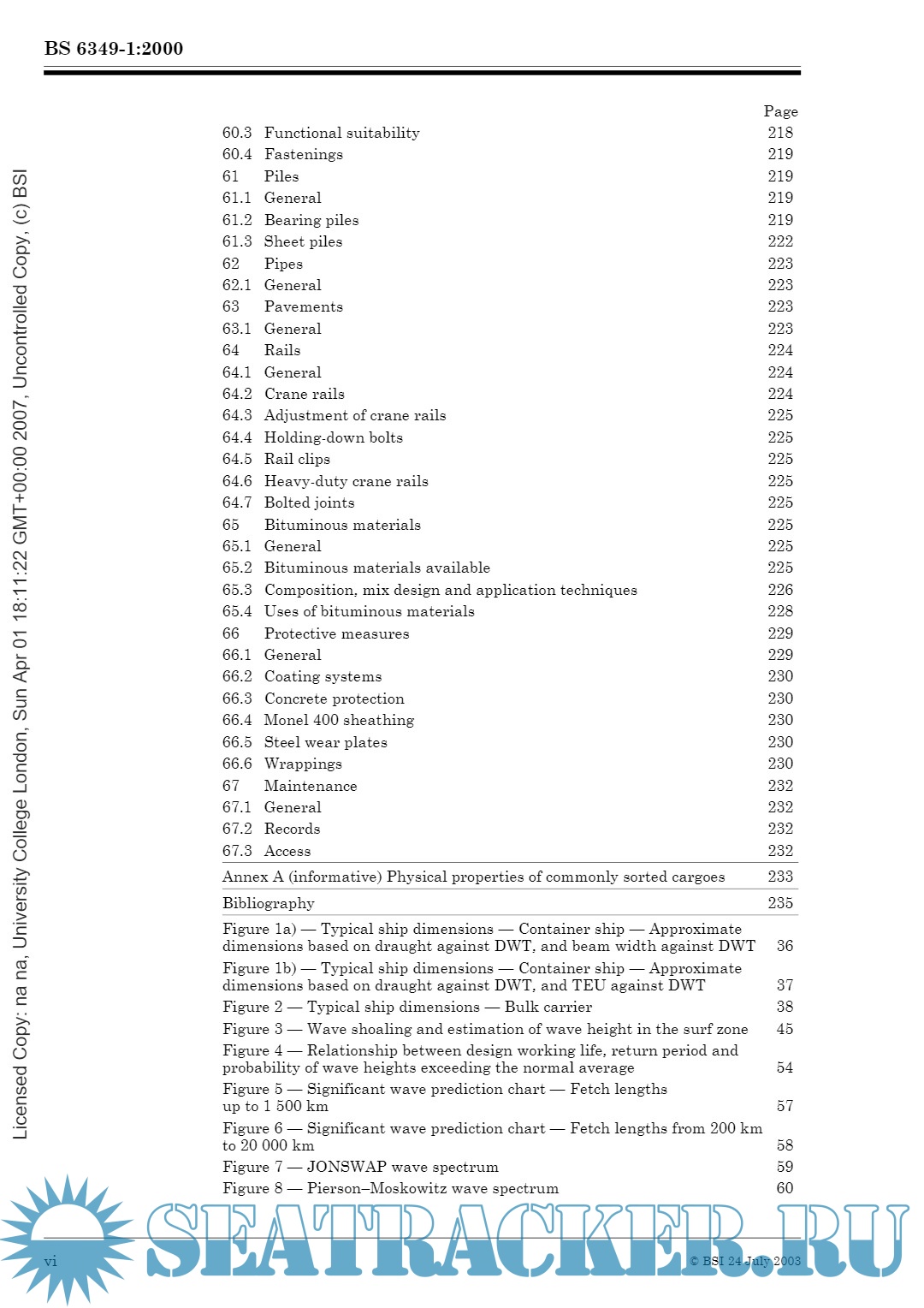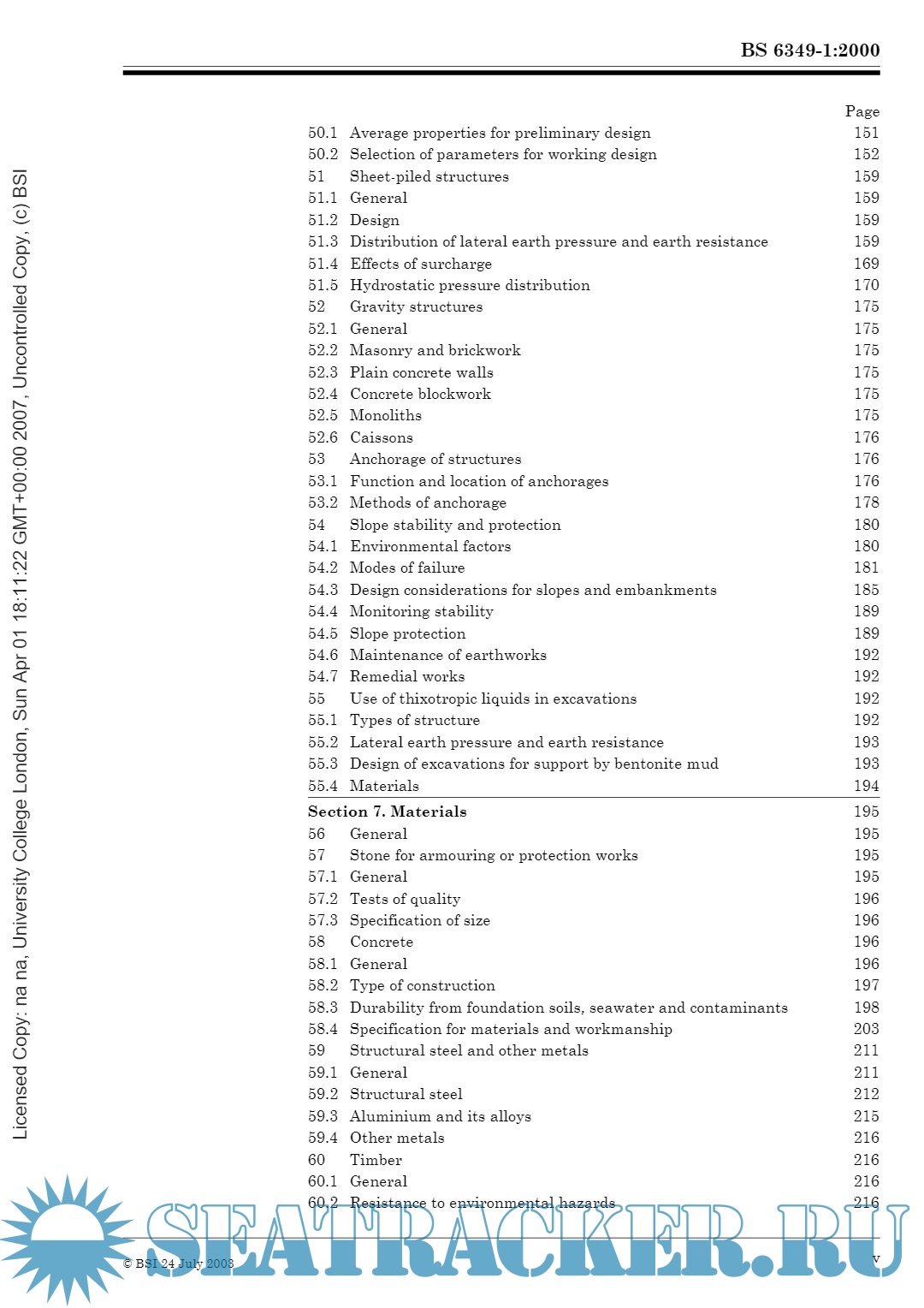 Year: 2003 Language: English Author: British Standard Genre: Technical book Publisher: BSi ISBN: 0 580 33169 5 Format: PDF Quality: eBook Pages count: 254 Description: This revision of BS 6349-1 has been prepared under the direction of the Technical Sector Committee for Building and Civil Engineering (B/-) and supersedes BS 6349-1:1984, which is withdrawn. BS 6349-1:1984 was published in advance of the subsequent parts of the code, which are listed at the end of this foreword. In the new edition, subject matter that is now duplicated or dealt with more fully in other parts of the code has been curtailed or deleted. All sections of Part 1 have been updated in order to take account of new developments or increased knowledge and all amendments previously issued by BSI have been incorporated. In Part 1 recommendations are given to assist clients and engineers to obtain the basic data relevant to the design of any maritime structure. Offshore structures and structures in inland waters are not covered by this code, although certain aspects might be relevant to such projects. Guidance is not given on financial criteria, although it should be recognized that the necessary and proper economic assessments should be made and considered for each project in conjunction with the engineering criteria covered by this code. This code has been written in relation to conditions that pertain to the UK and, although the majority of the contents are directly applicable elsewhere, local conditions or sources might necessitate appropriate modifications. In general, reference is made to British Standards and not to European Standards, because most relevant European Standards are still in the pre-standard (ENV) form. Only in the case of structural steel, for which ENs have been published, is reference made to European Standards (see clause 59). This code of practice contains information and guidance for engineers and recommendations on good practice. As such, conformity with its recommendations is not obligatory and variations from its recommendations might well be justified in special circumstances. Engineering judgement should therefore be applied to determine when the recommendations of the code should be followed and when they should not. This code of practice is intended for use by engineers who have some knowledge of the subject. It embodies the experience of engineers successfully engaged in the design and construction of the particular class of works, so that other reasonably qualified engineers can use it as a basis for the design of similar works. A code of practice represents good practice at the time it is written and, inevitably, technical developments can render parts of it obsolescent in time. It is the responsibility of engineers concerned with the design and construction of works to remain conversant with developments in good practice that have taken place subsequent to the publication of this code. It has been assumed in the drafting of this British Standard that the execution of its provisions is entrusted to appropriately qualified and experienced people. Figure 16a), Figure 16b), Figure 17a) and Figure 17b) are reproduced with the