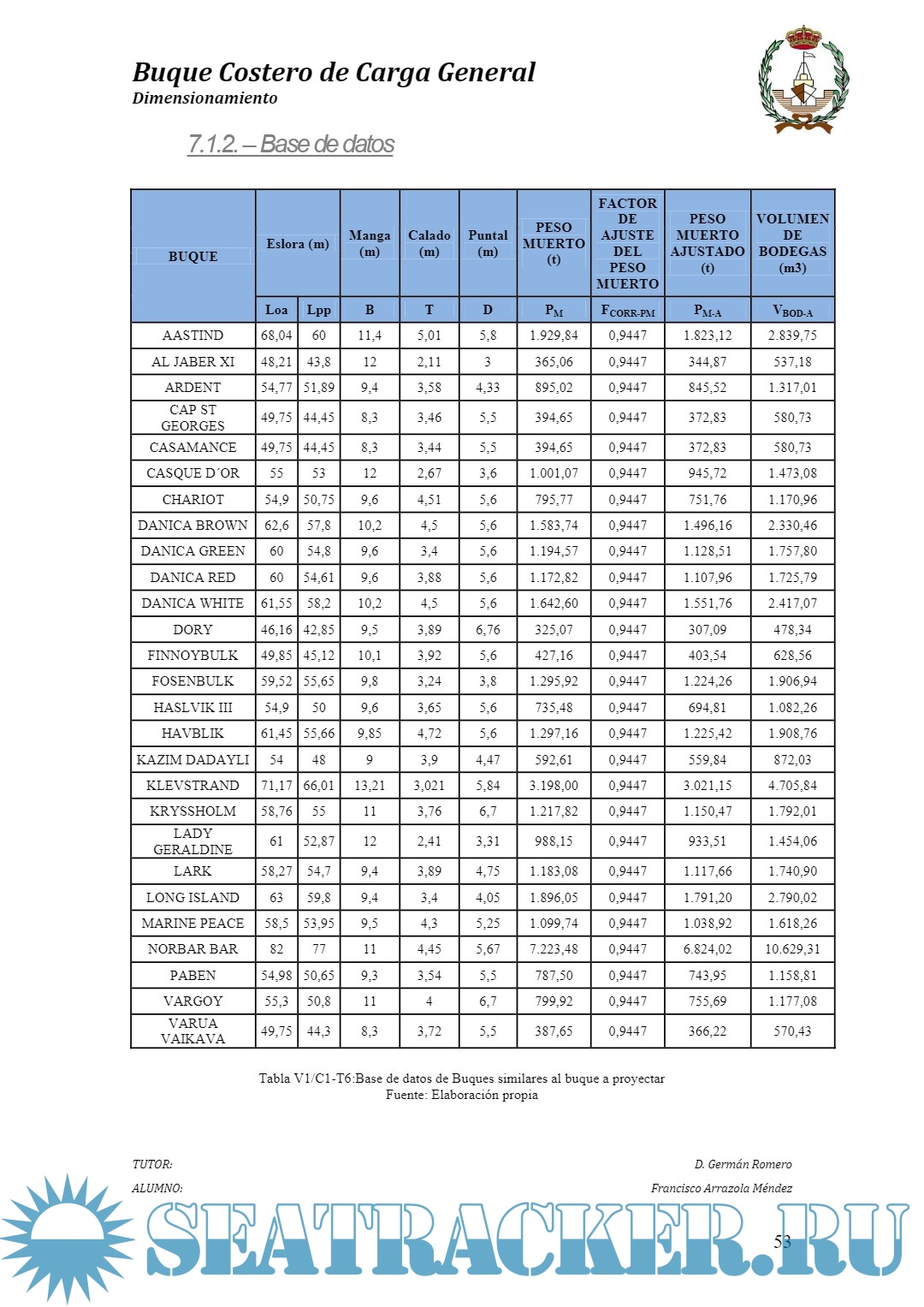 VOLUMEN I DIMENSIONAMIENTO DEL BUQUE PROYECTO