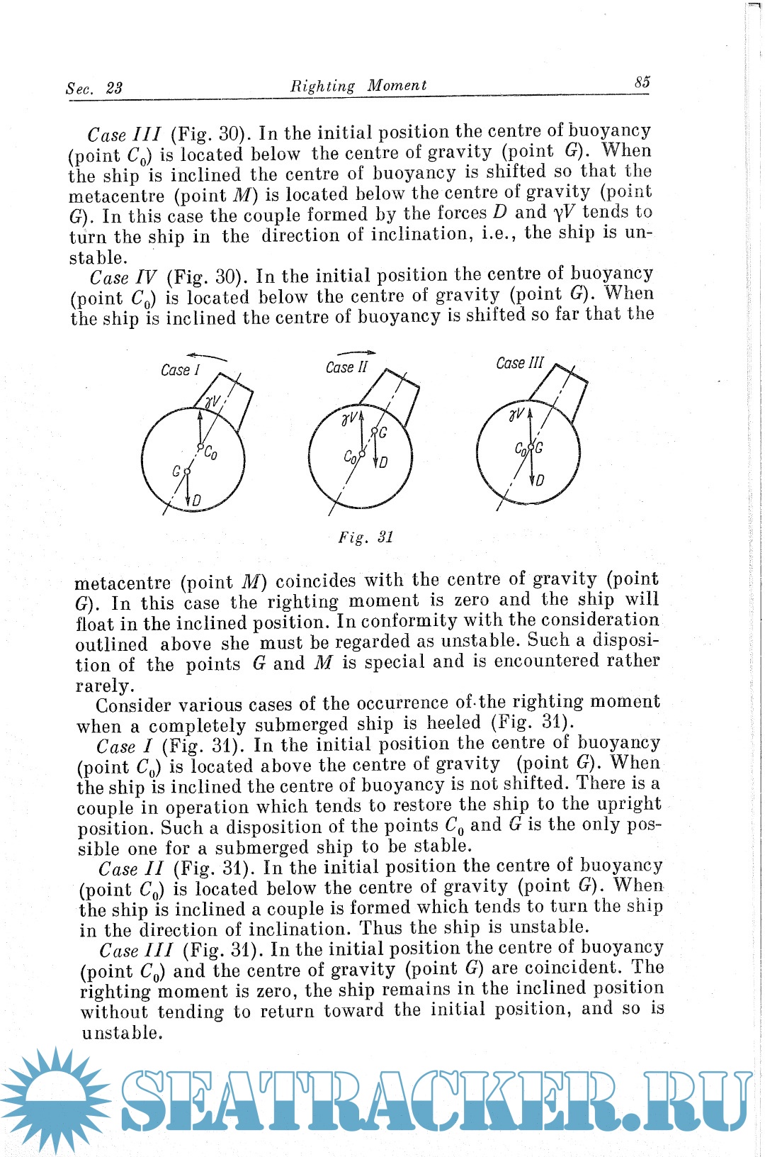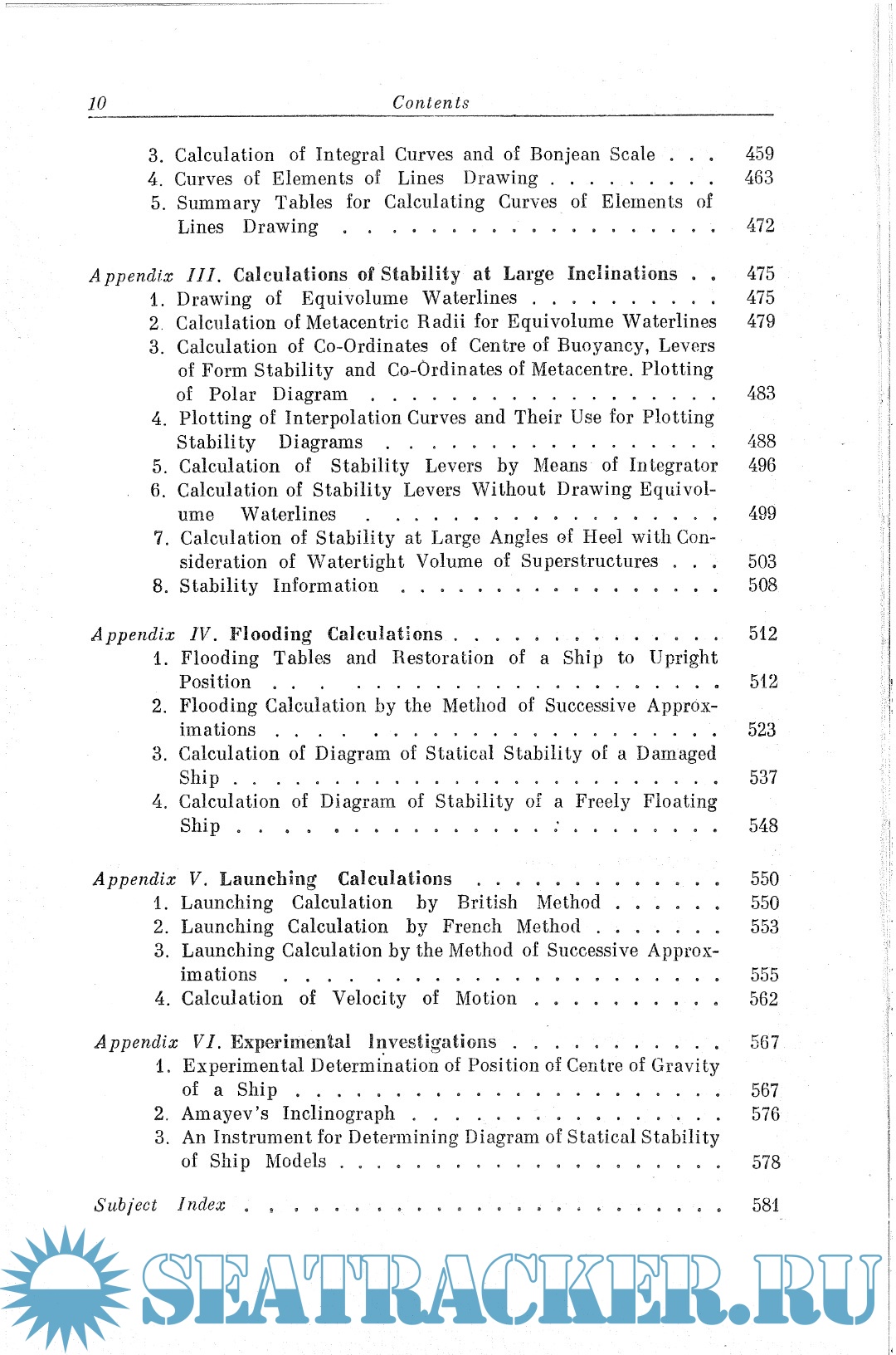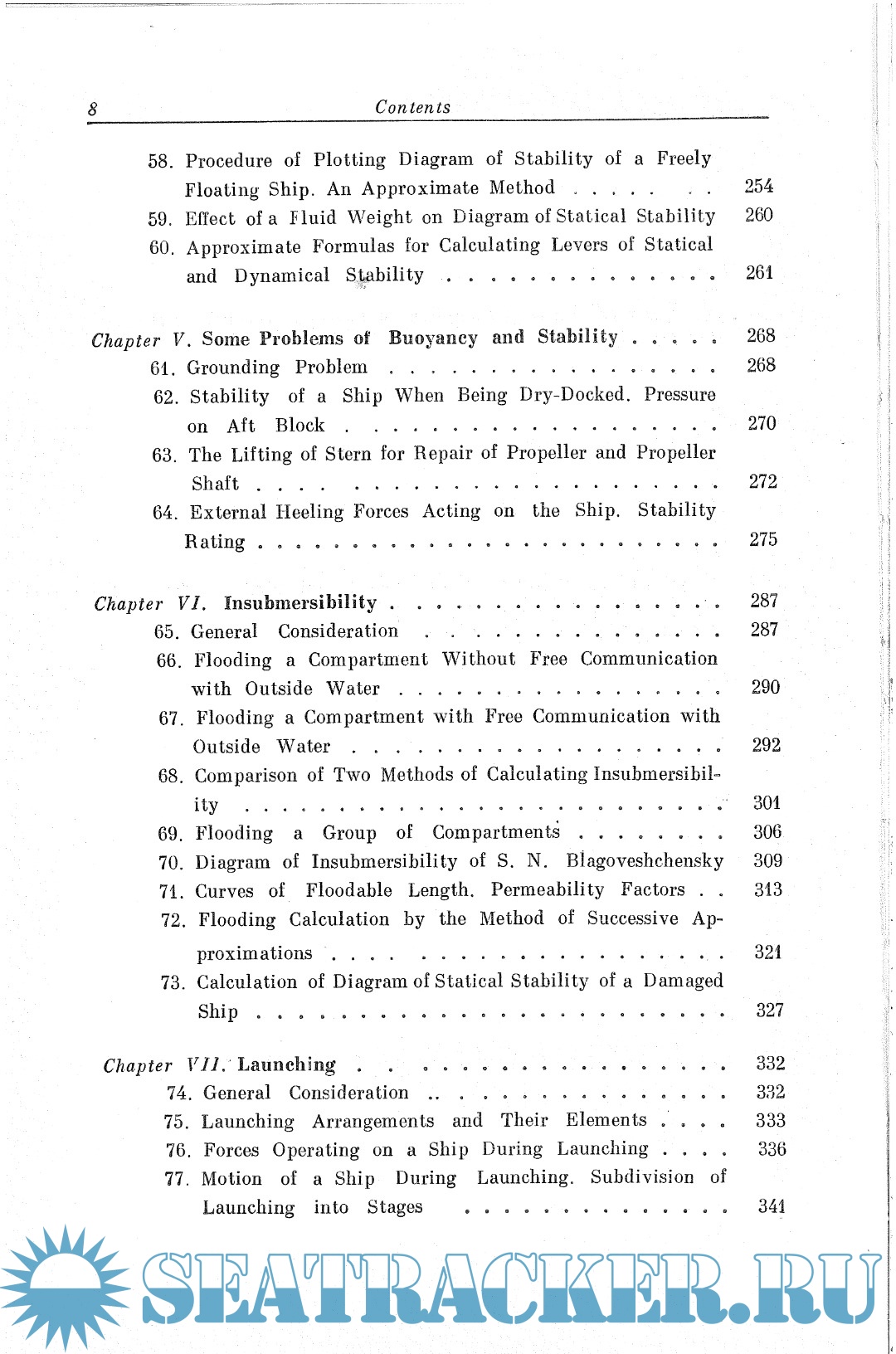 The book treats the problems concerned with the buoyancy and stability of a complete and demaged ship encountered by the naval architect in the design, building and operation of ships. It presents the theory of the subject matter and the methods of calculations employed in ship cpnstruction.
