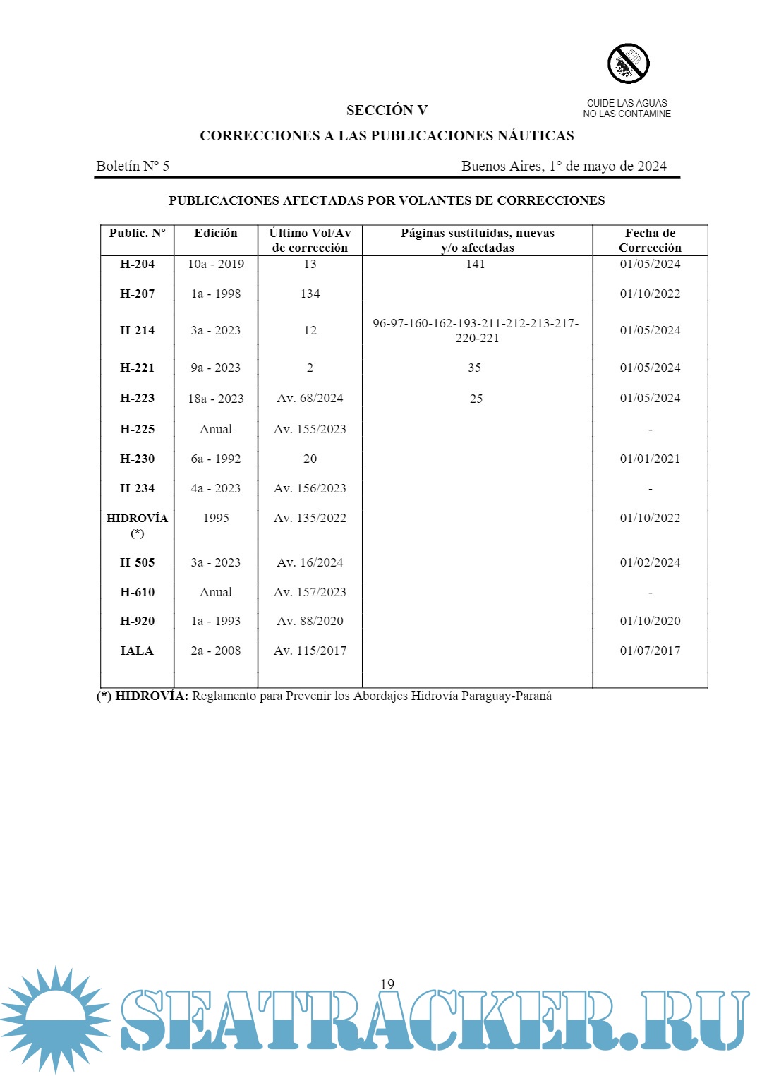 Boletín Avisos a Los Navegantes - Hidrovía Paraguay-Paraná