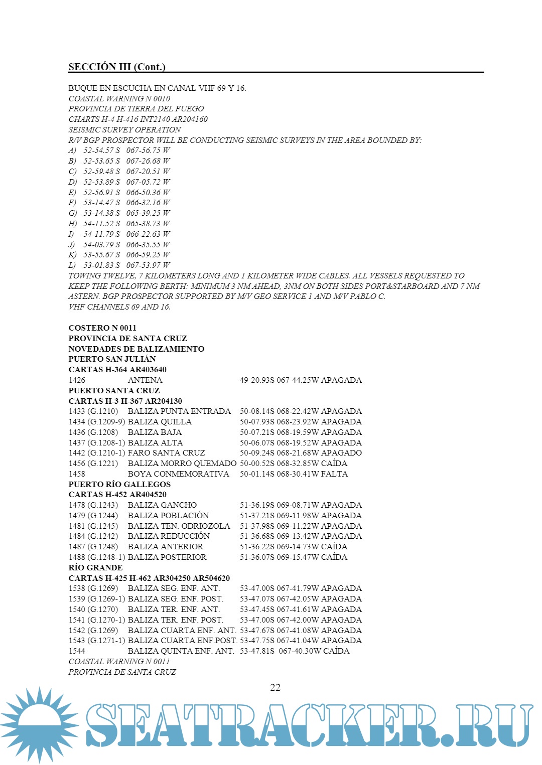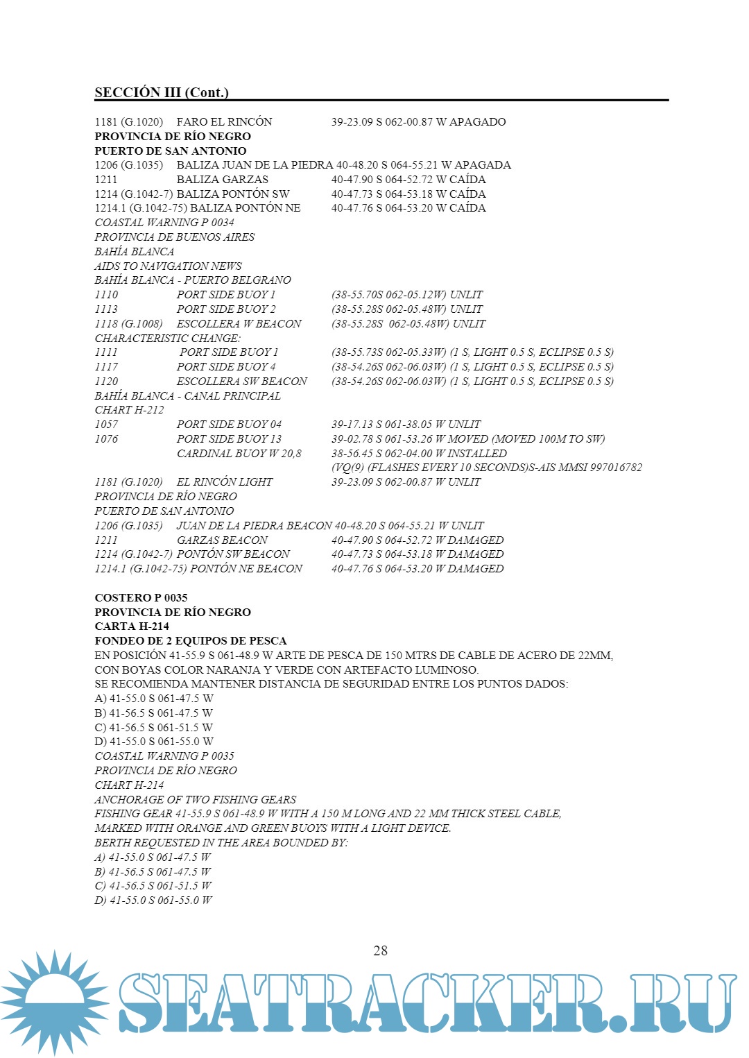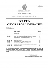 Description: El Servicio de Hidrografia Naval presta el servicio público de "Seguridad Náutica", entreotras actividades y edita desde 1918, la presente Publicación H-216 "Bletín Avisos a Los Navegantes".