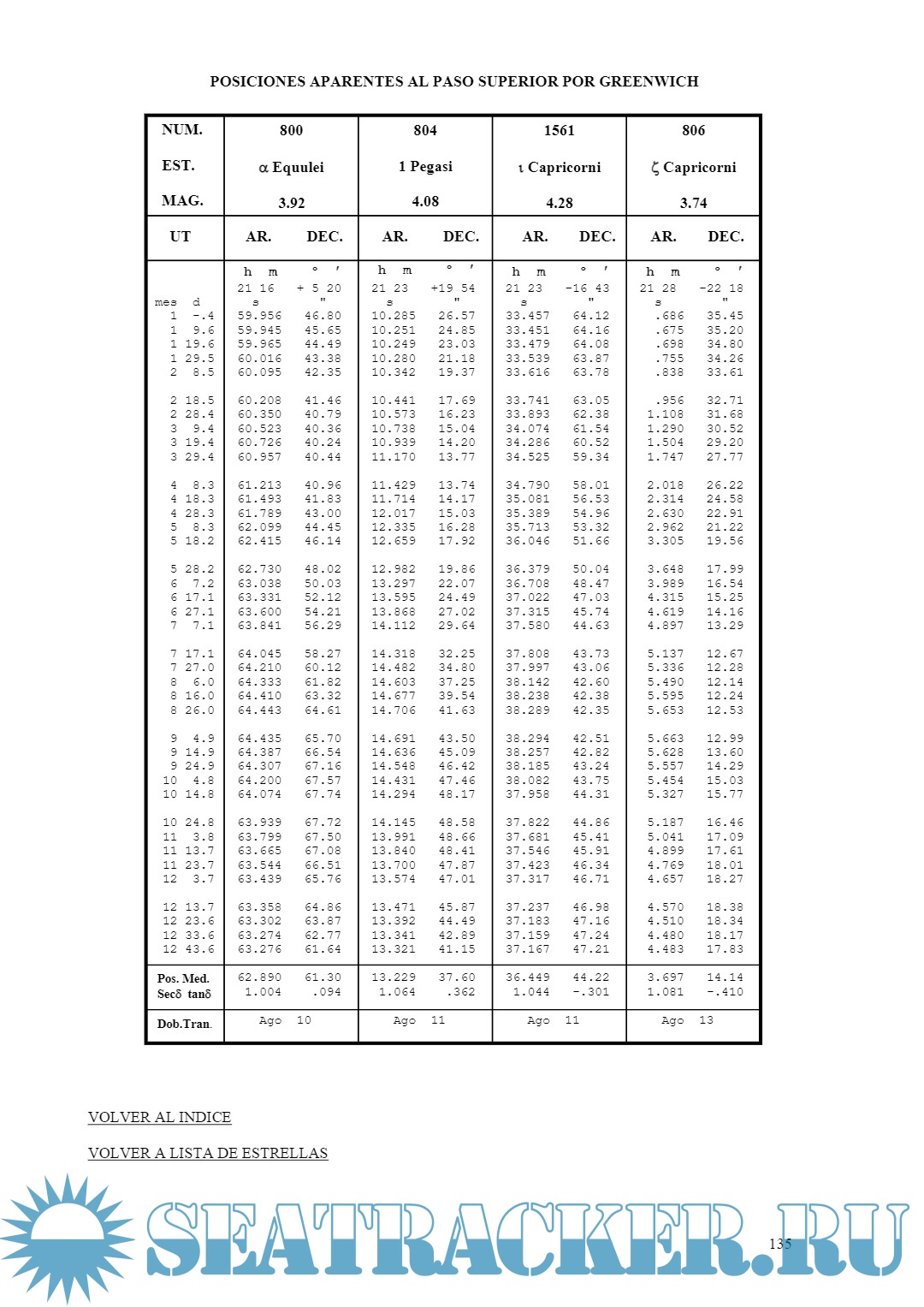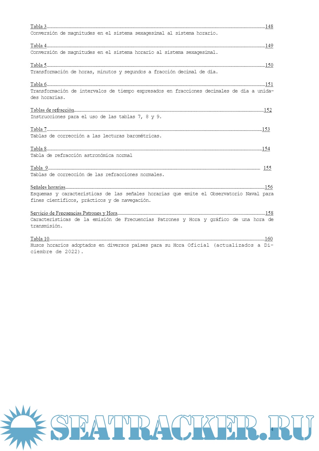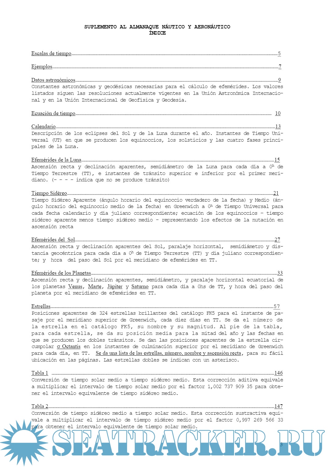 Se incluyen en ella datos necesarios para determinar la posición geográfica mediante observaciones astronómicas, como así también tablas de transformaciones, correcciones y equivalencias aplicables a diversos cálculos. Contiene las posiciones aparentes de 324 estrellas fundamenta-les brillantes, sin incluir en ellas los términos de corto período de la nutación (inferiores a 35 días).
