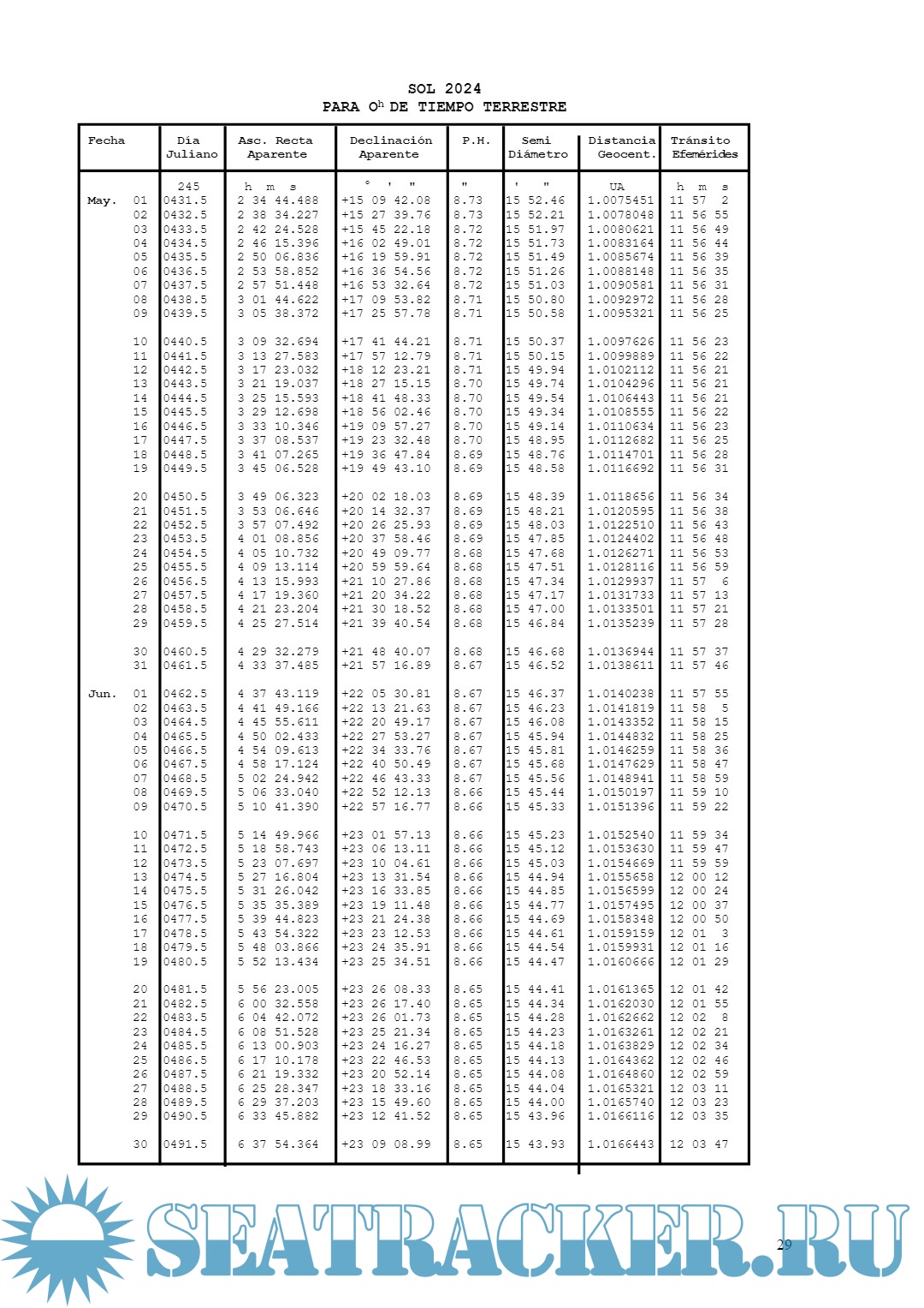 Suplemento al Almanaque Náutico y Aeronáutico para el año 2024 - Sol, Planetas y Estrellas