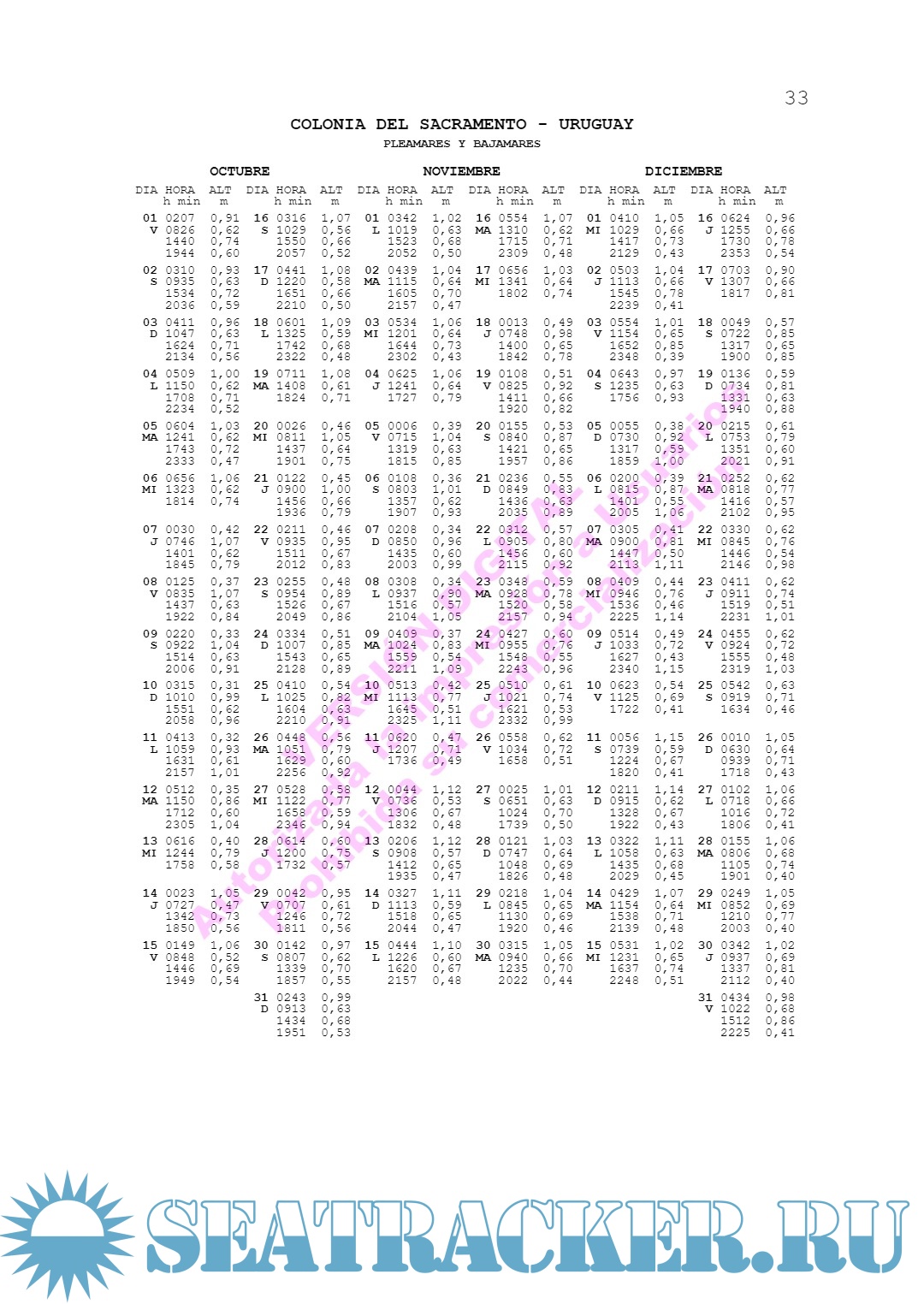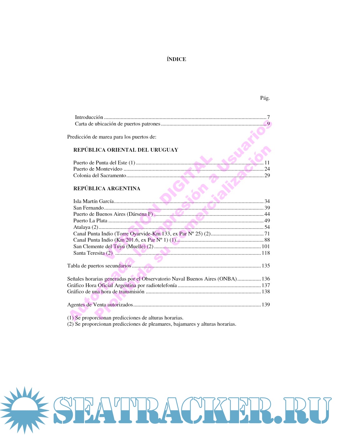 Tablas de Mareas - Separata Zona del Río de la Plata