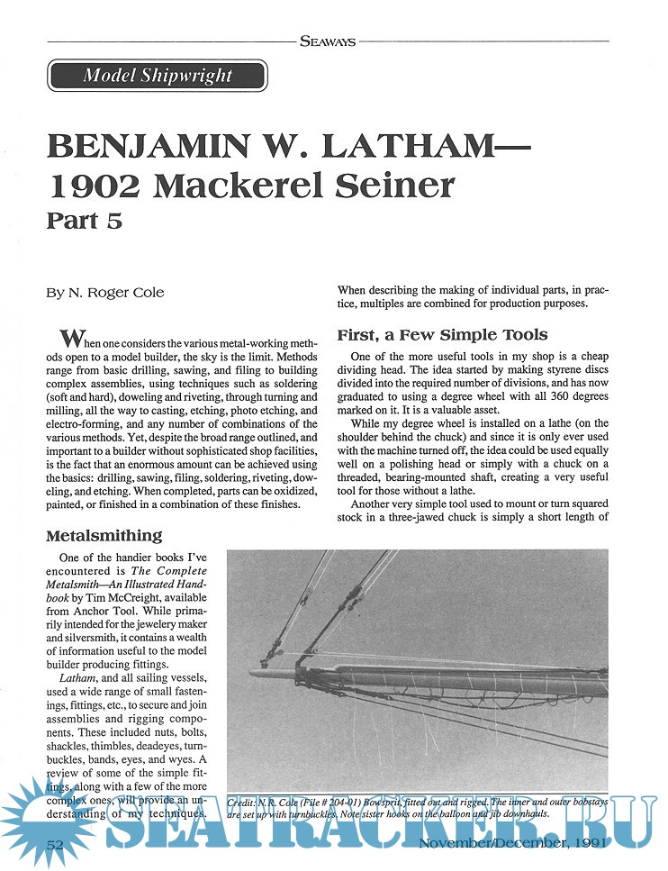 Year: 1991 Language: English Author: Scottie Dayton (Editor) Genre: Periodical (magazine) Edition: 1991-6 Format: PDF Quality: eBook Pages count: 76 Description: Seaway is the home port for Seaways Ships in Scale magazine, the leading workshop and research magazine for the ship modeler. In the magazine we explore all levels of modeling experience, all types of ships, all kinds of models, all historical eras and all construction materials
