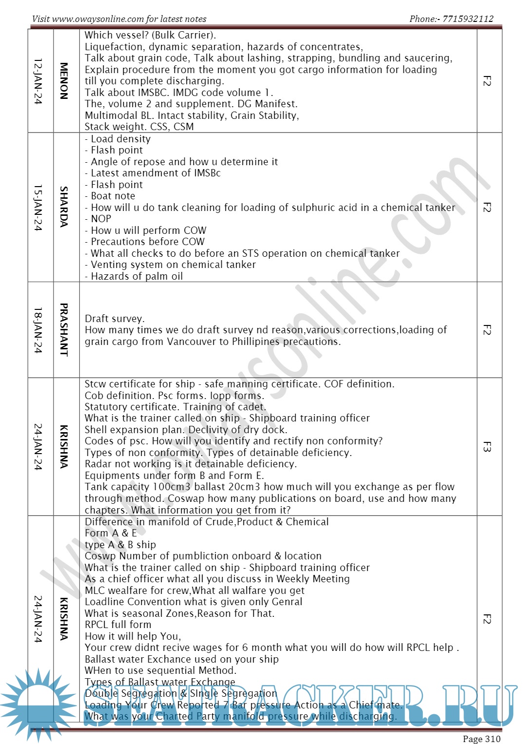 Orals Question Bank (April 2024) for Chief Mate F.G. Mercantile Marine Department (MMD), India Examinations