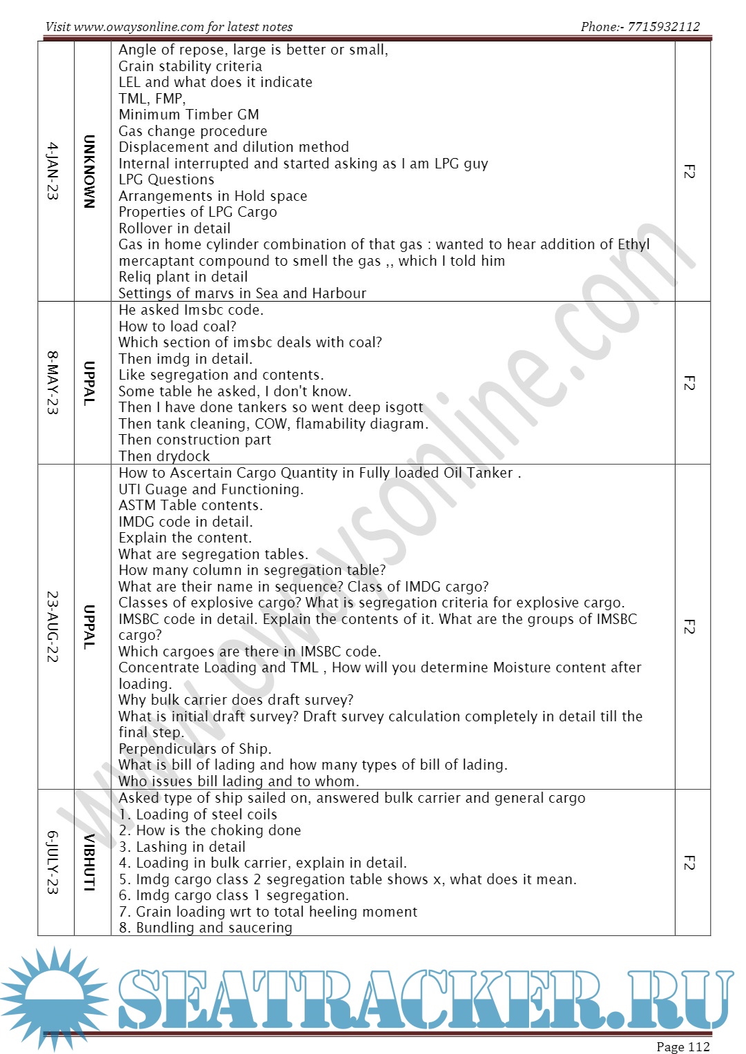Description: Orals Question Bank for Chief Mate F.G. Mercantile Marine Department (MMD), India Examinations.