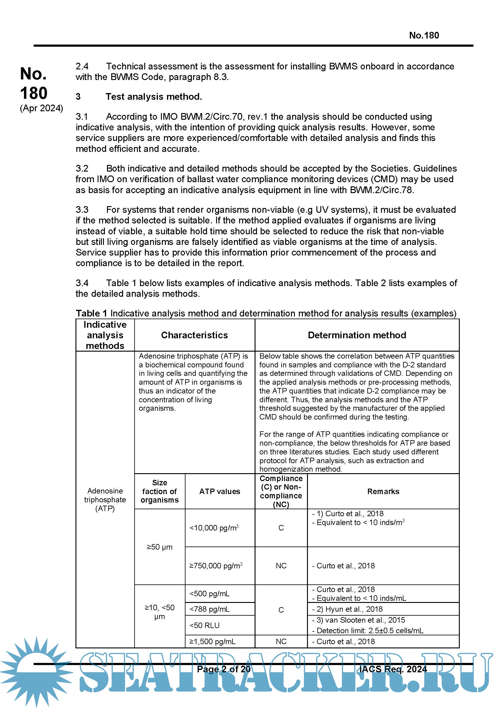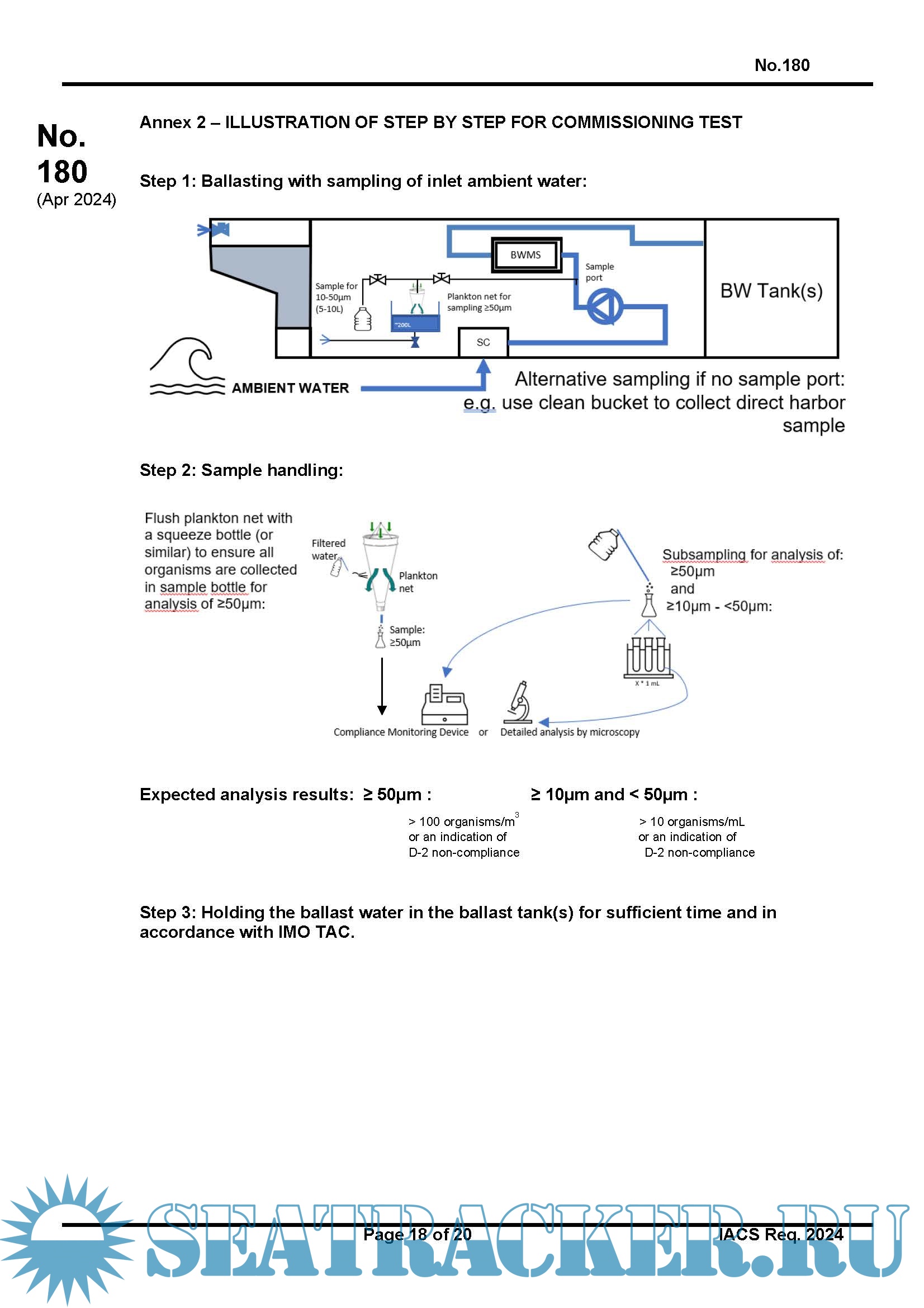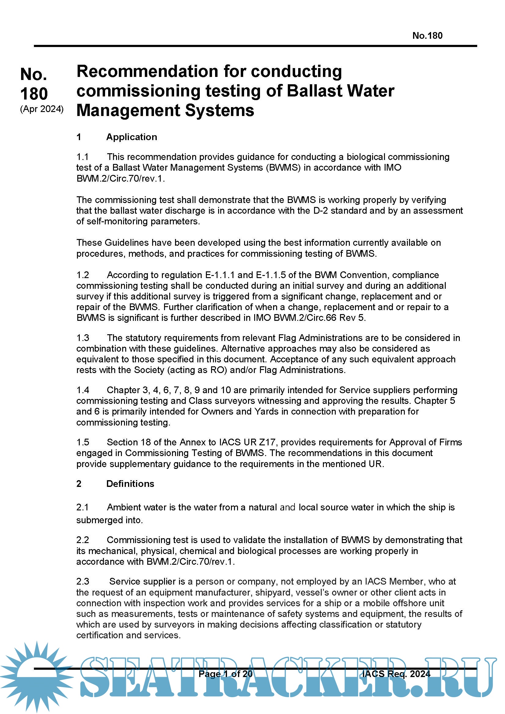 Description: Rec 180 – Recommendation for conducting commissioning testing of Ballast Water Management Systems – New April 2024. Resolutions.