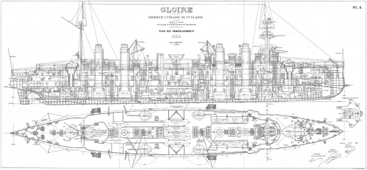 Архивные чертежи французского крейсера 1-го ранга GLOIRE 1900 год