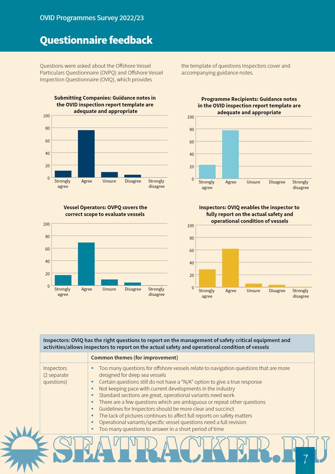 * Programme Integrity (feedback on Inspectors, policies and procedures) The four OVID programme user groups – submitting companies, Programme Recipients, Vessel Operators and Inspectors – have been surveyed about the aspects of the programme that apply to their use and interaction with the inspection regime.