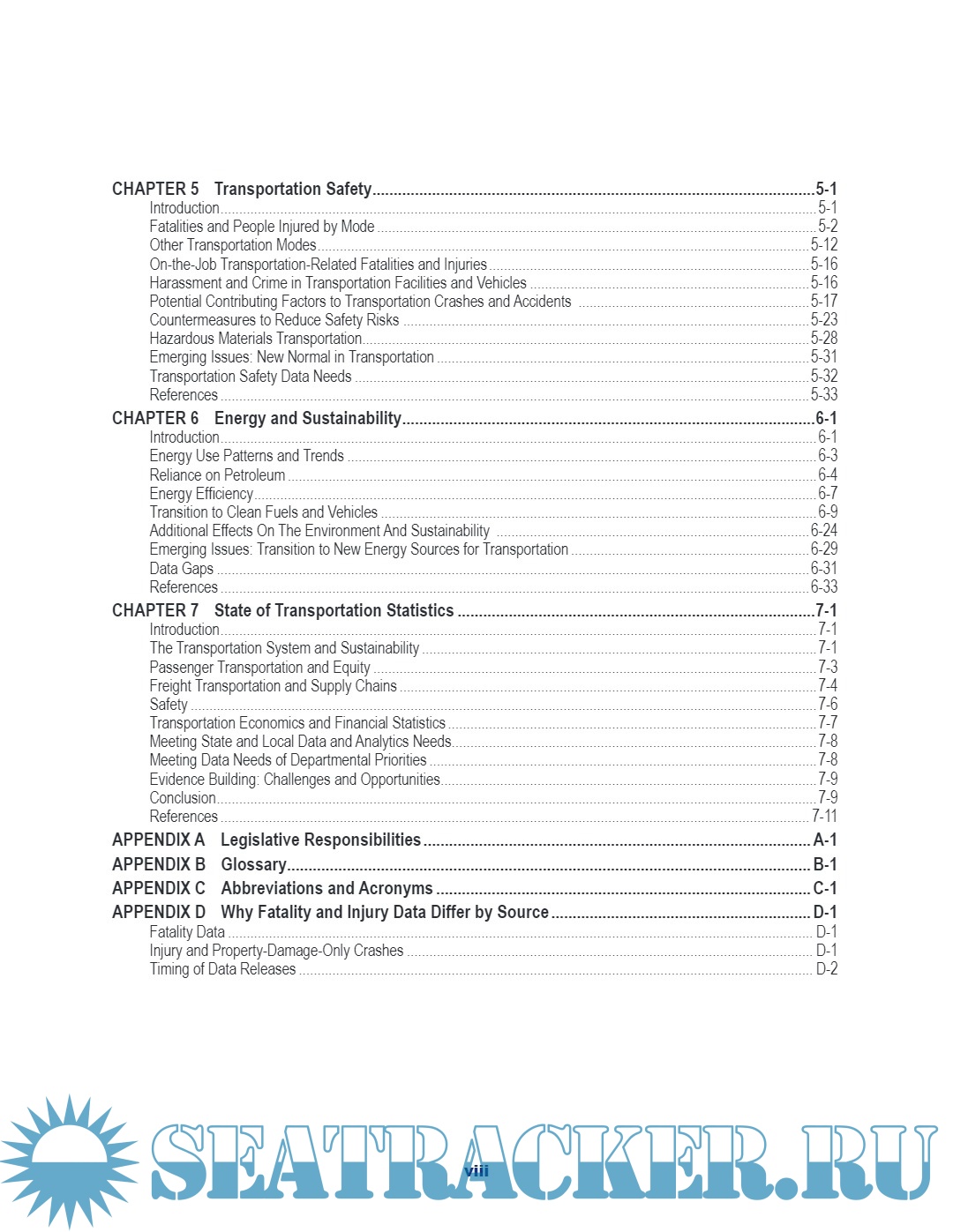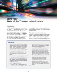 Description: The Transportation Statistics Annual Report (TSAR) presents an overview of the U.S. transportation system and key indicators, including data and statistics on passenger travel, freight movement, transportation and the economy, system reliability, safety, energy use, and the environmental impacts of transportation. The report also focuses on closing data gaps and improving the ways transportation statistics are collected, compiled, analyzed, and published.