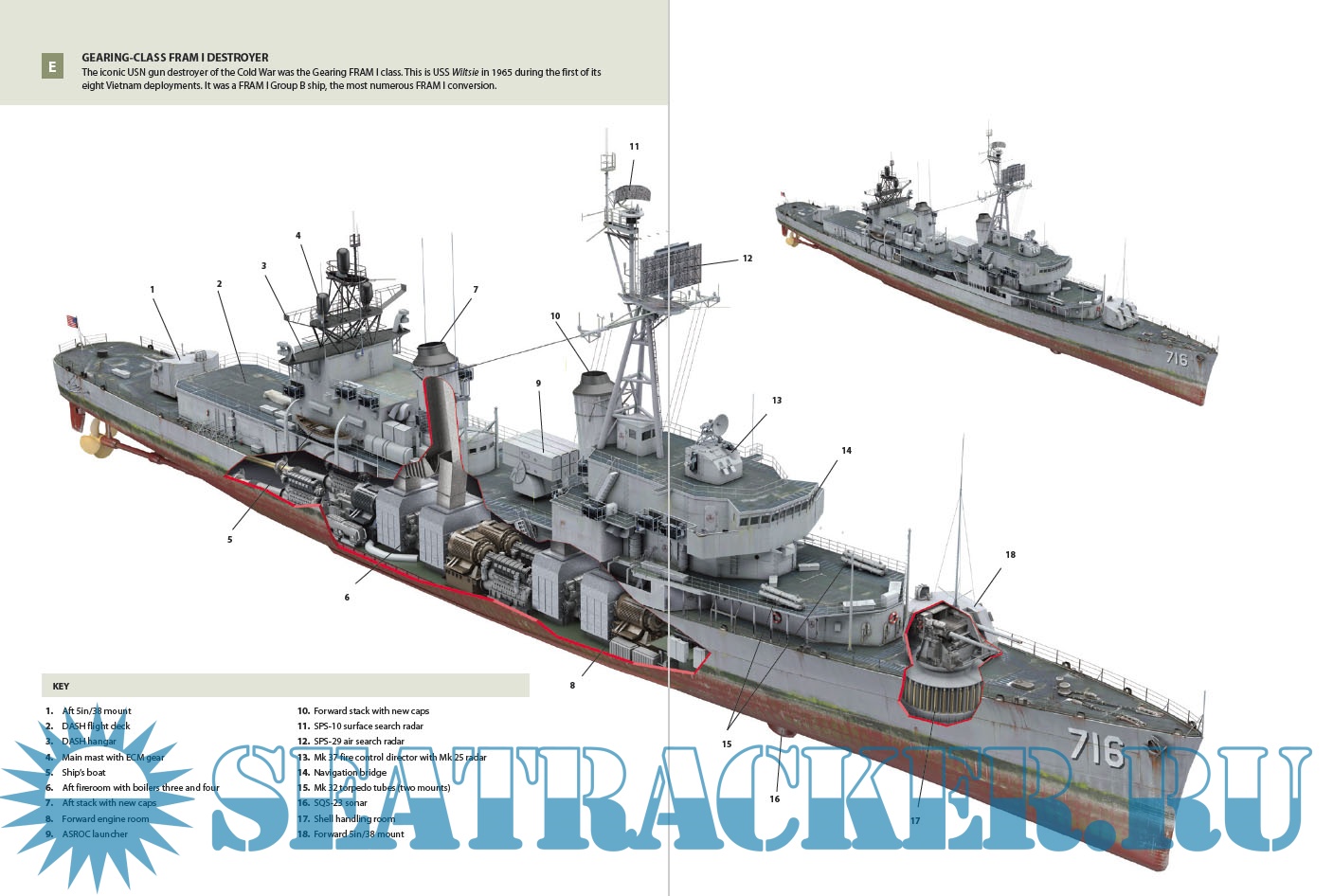 The Gearing class was the classic US Navy wartime destroyer to have a second Cold War career, some being modified into picket ships and others into ASW escorts. Ninety-five were extensively modernized under the Fleet Modernization and Rehabilitation (FRAM) program which allowed them to serve until 1980. The majority of these ships then saw service with foreign navies.