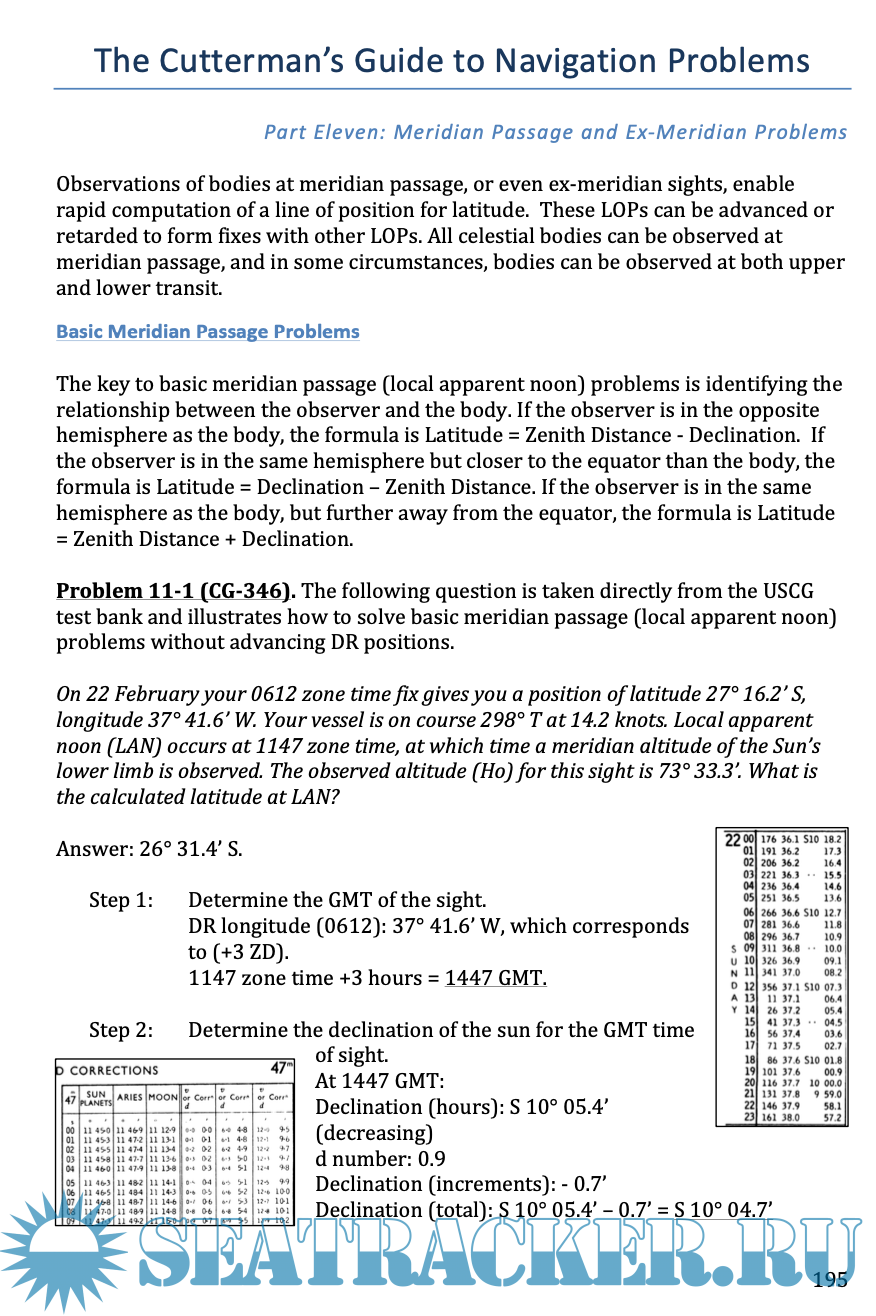 Description: In the age of electronic navigation, older manual calculation methods have fallen out of favor. However esoteric it may seem, competent navigators must maintain proficiency with older navigation methods for three main reasons: