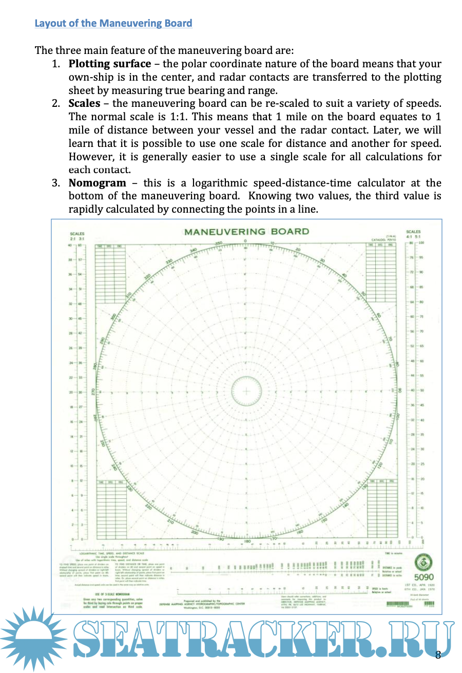 Description: Maneuvering boards are a tool that must be mastered to achieve proficiency as a deck watch officer or officer-in-charge of a navigational watch. Although an older technique, it is not outdated. A mastery of maneuvering board techniques demonstrates a true understanding of relative motion, the most critical aspect in making collision avoidance decisions at sea.