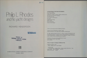 Description: Philip L. Rhodes was one of the most versatile of all naval architects - for nearly half a century, until his death in 1974, he was at the front of the yacht design, and his influence continues today. Operating under his firm's slogan of "Any size, any type, any service", he achieved an impressive design record and throughout his career spearheaded experimentation in new construction materials and techniques.