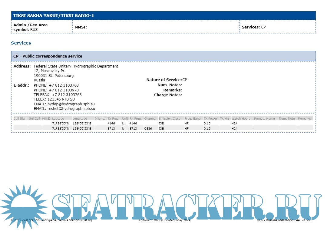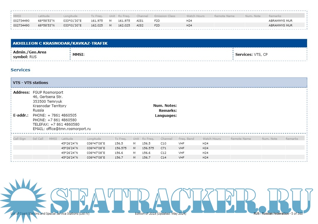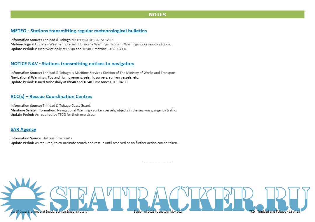 Additional info: These compilations are published for information only and the carriage on board ships applicable to LIST IV is not required (ref. Appendix 16 of the Radio Regulations).