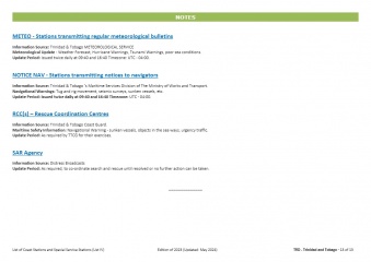 Description: List IV contains important information for the mariner in relation to radiocommunications, including the GMDSS (Global Maritime Distress and Safety System). Detailed information such as the frequencies for transmitting and receiving, in addition to geographical coordinates, is provided for maritime coast radio stations, including those assuming watch-keeping using digital selective calling (DSC) techniques and radiotelephony. List IV also supplies details of additional services such as medical advice, navigational and meteorological warnings, MSI (Maritime Safety Information), AIS (Automatic Identification System), meteorological bulletins and radio time signals, along with the hours of service and operational frequencies, information on port stations, pilot stations, coast Earth stations, VTS stations, contact information of RCC (Rescue Coordination Centers), SAR agencies, Navarea coordinators and AtoNs (AIS Aids to Navigation).As stipulated in Appendix 16 to the RR, this List shall be provided to all ship stations for which a Global Maritime Distress and Safety System (GMDSS) installation is required by international agreement.