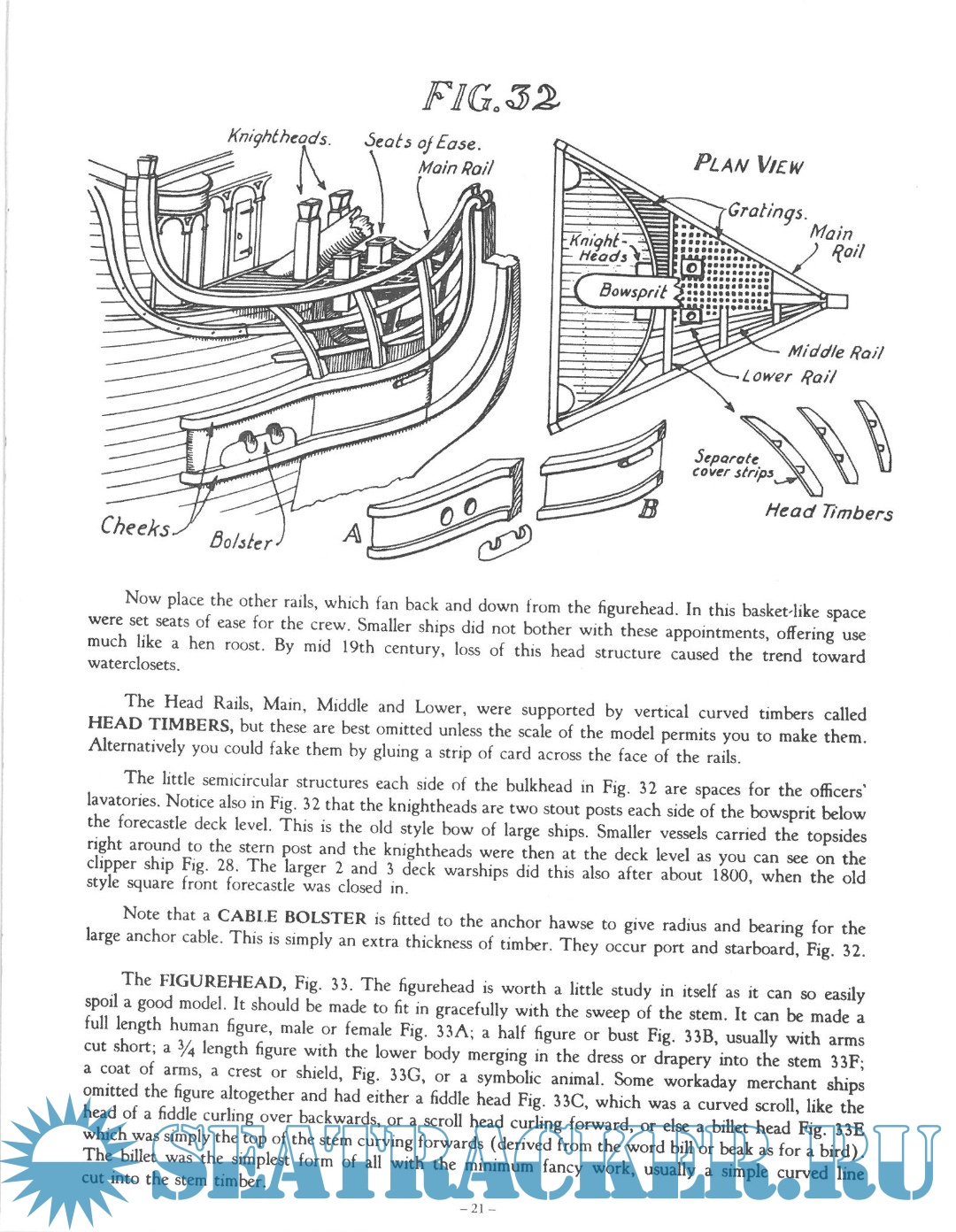 Year: 2007 Language: English Author: Campbell G.F. Genre: Manual Format: PDF Quality: eBook Pages count: 64 Description: This booklet is a guide to techniques of modelling from a wood kit. It is not a description of the construction of any certain model or type of vessel. For details of particular types, there are a number of excellent books which are described on the back page of this booklet. We start with the preparation of the simple hull, move on to the important members, furniture, painting, then, on to the rigging. Some statements herein which seem like pontifications are only efforts to be brief and precise in an immense field of facts and shadings. Shipbuilding methods and design of detail had many similarities over western Europe and America; a good idea knows no boundaries. Further, in America s early days a large proportion of American naval architects were British born and trained, all of them steeped in British practice. Longridge's "Anatomy of Nelson's Ships" is almost as valid a source of detail for CONSTITUTION modellers as for VICTORY and her type.