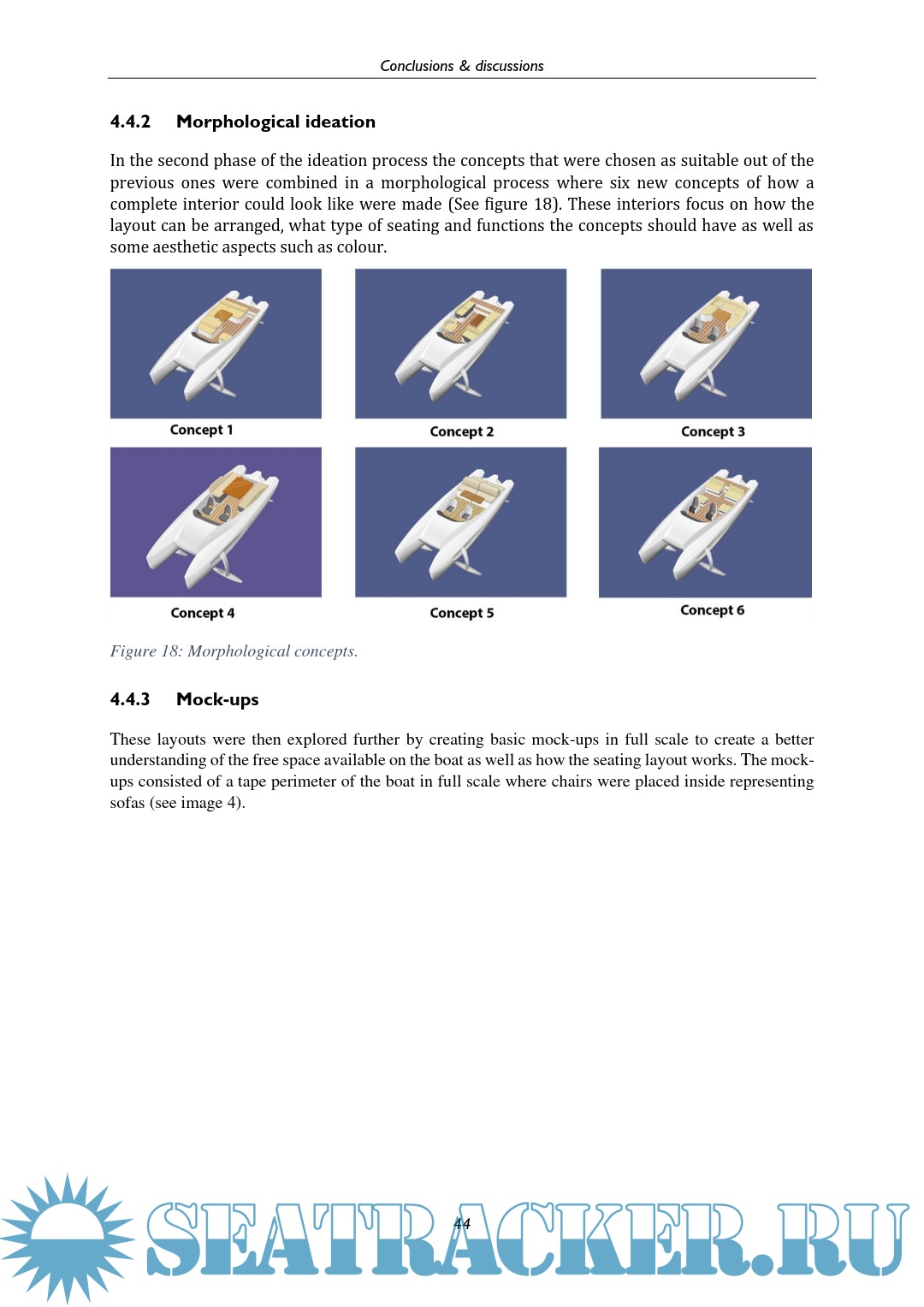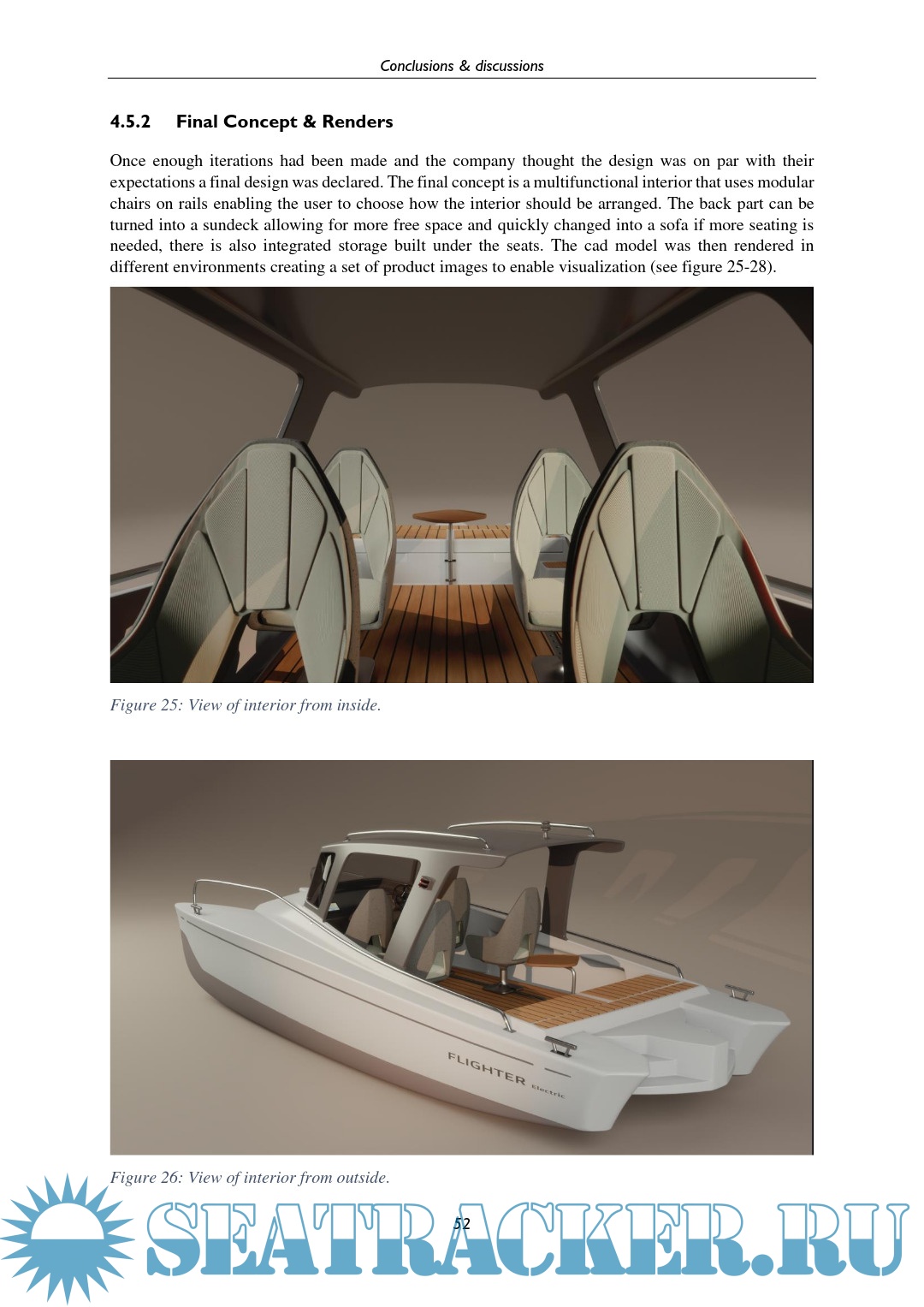 Year: 2023 Language: English Author: Nilsson A. Genre: Research papers Format: PDF Quality: eBook Pages count: 62 Description: Boats have a rich history, evolving in shape and purpose. From ancient logboats to modern superyachts, their design depends on their intended use. Among personal watercraft, such as yachts and motorboats, there are various types like fishing boats and day cruisers. Runabout boats are popular today for leisure. They are fast, agile, and versatile, originating in the 1920s with wooden bodies. Modern Runabout boats carry 4-8 people, lack a cabin, and are favored by casual boaters. One of the latest trends within boating is the usage of hydrofoils, a hydrofoil is a wing-like shape that lifts a boat out of the water, reducing drag on the boat. Flighter is a new company intending on creating a new concept for a hydro foiling boat that is meant for transportation. They want a boat that is agile and has some multifunctional aspects allowing it to be used by a wider user group. The following project is a design project focused on the conceptual interior design of Flighters new boat where the goal is to create an interior that fits with Flighters agenda. The concept developed through the project uses a rail system to create modular seating that allows the user to modify the boat to the current needs. There is also a multifunctional sofa in the back allowing for extra storage and seating if needed.