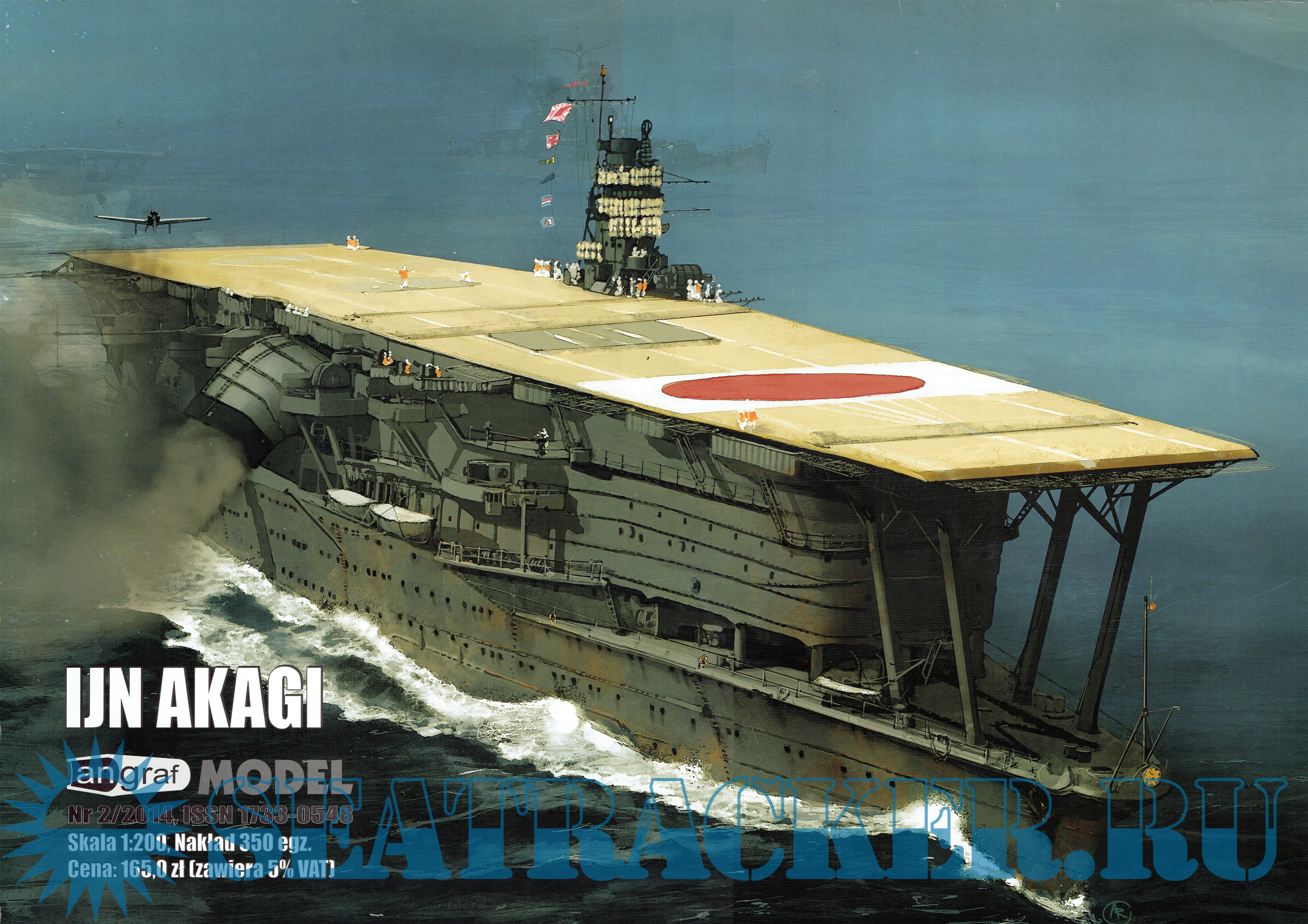 58 листов цветных выкроек и инструкций для изготовления бумажной модели японского авианосца IJN Akagi в масштабе 1:200