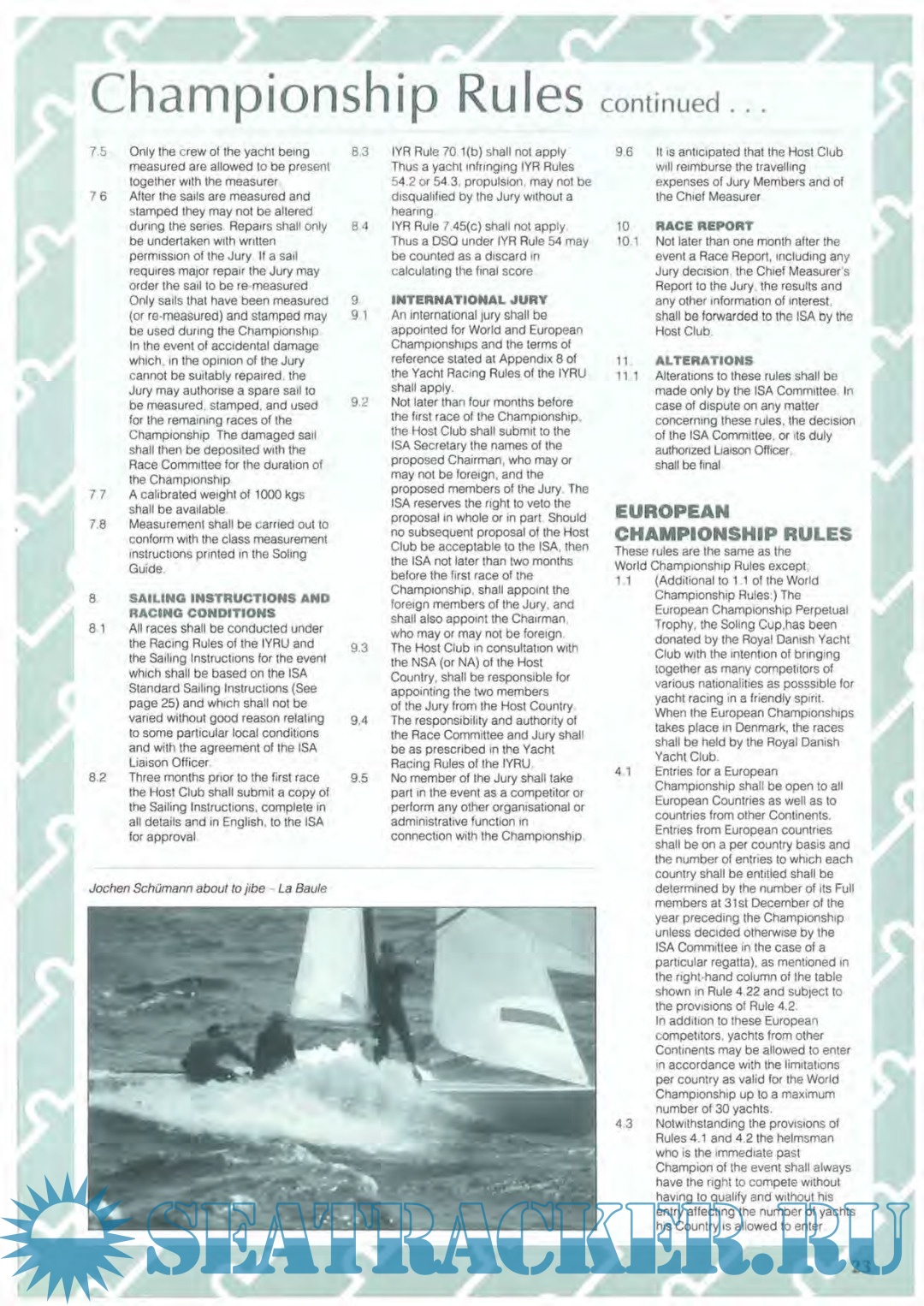 To some degrees, this Guide as well as those of past years is an arrested "still" of a process in motion - rules as of the date of publication, yet rules which even now are in the process of revision to keep pace with improvements, the creative results of sailors and builders finding ways to increase speed, though not always In the interests of one-design similarity; but that goes on forever. Regular supplements with the latest rules will keep the Class up to date before the 1996 Guide is published.
