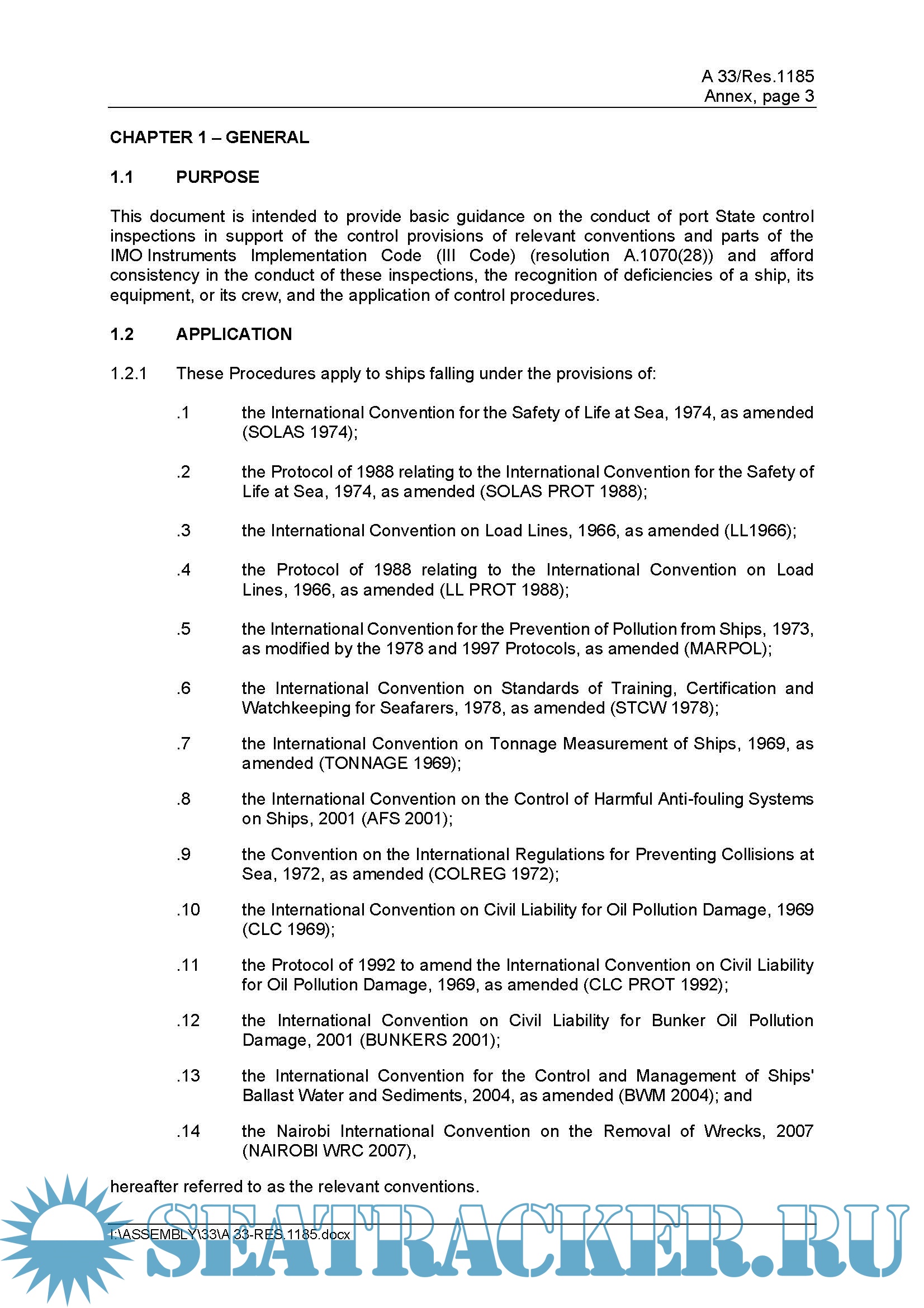 This document is intended to provide basic guidance on the conduct of port State control inspections in support of the control provisions of relevant conventions and parts of the IMO Instruments Implementation Code (III Code) (resolution A.1070(28)) and afford consistency in the conduct of these inspections, the recognition of deficiencies of a ship, its equipment, or its crew, and the application of control procedures.