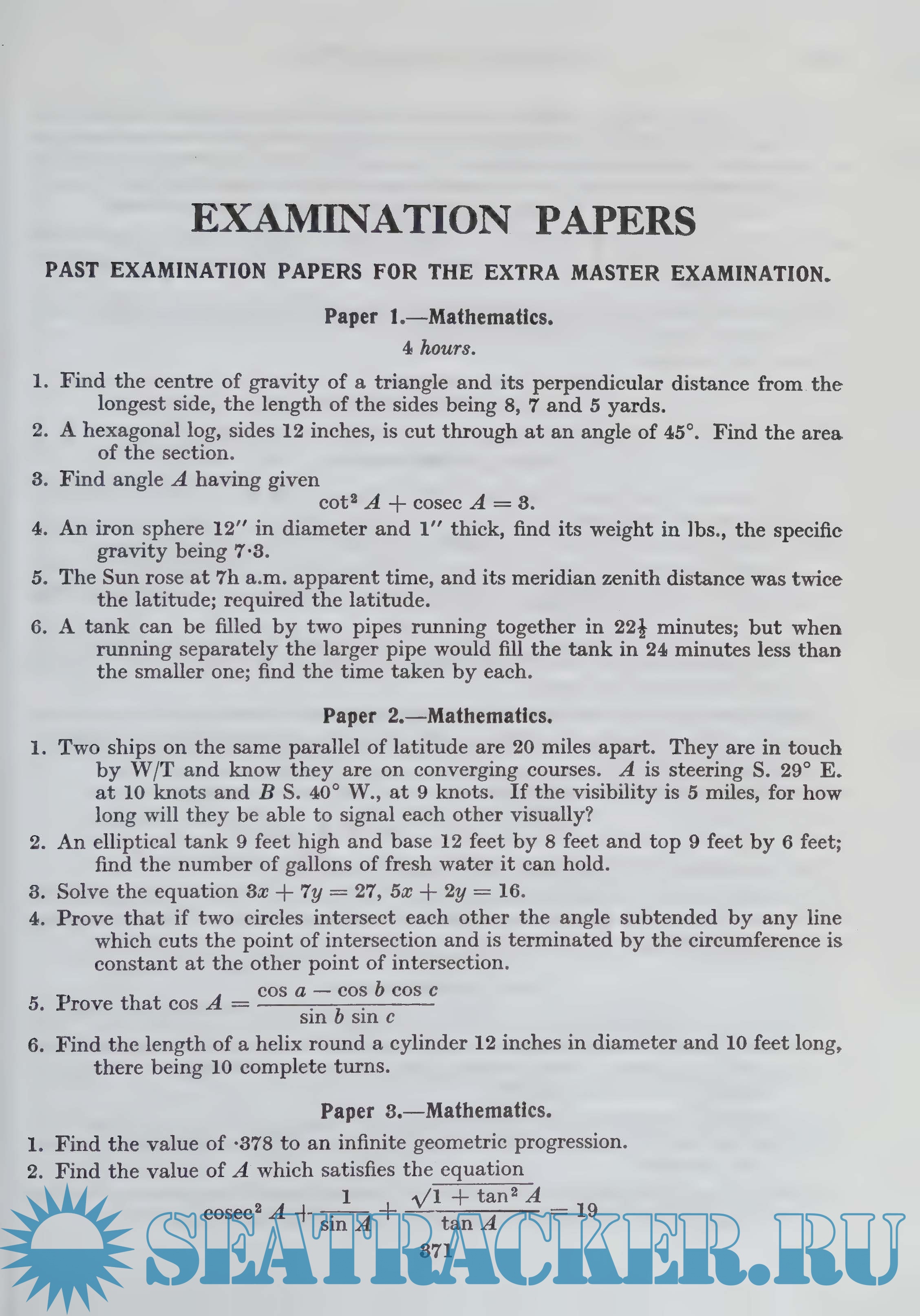 Numerous figures have been re-drawn and new ones added. New features include a check list system of instructions for Tidal Calculations (worked on the new Admiralty Forms, NP204), Radar Plotting, Passage Planning and for Finding Suitable Stars for Meridian Altitudes. Where appropriate, the various steps involved in calculations and procedure have been included in the worked examples and directly linked to the cheek lists and pro-formas provided. It is to be hoped that these inclusions will reduce learning times and be of assistance to the student working privately at sea and also, perhaps, to colleges in those parts of the developing world where there is a shortage of technical instructors.
