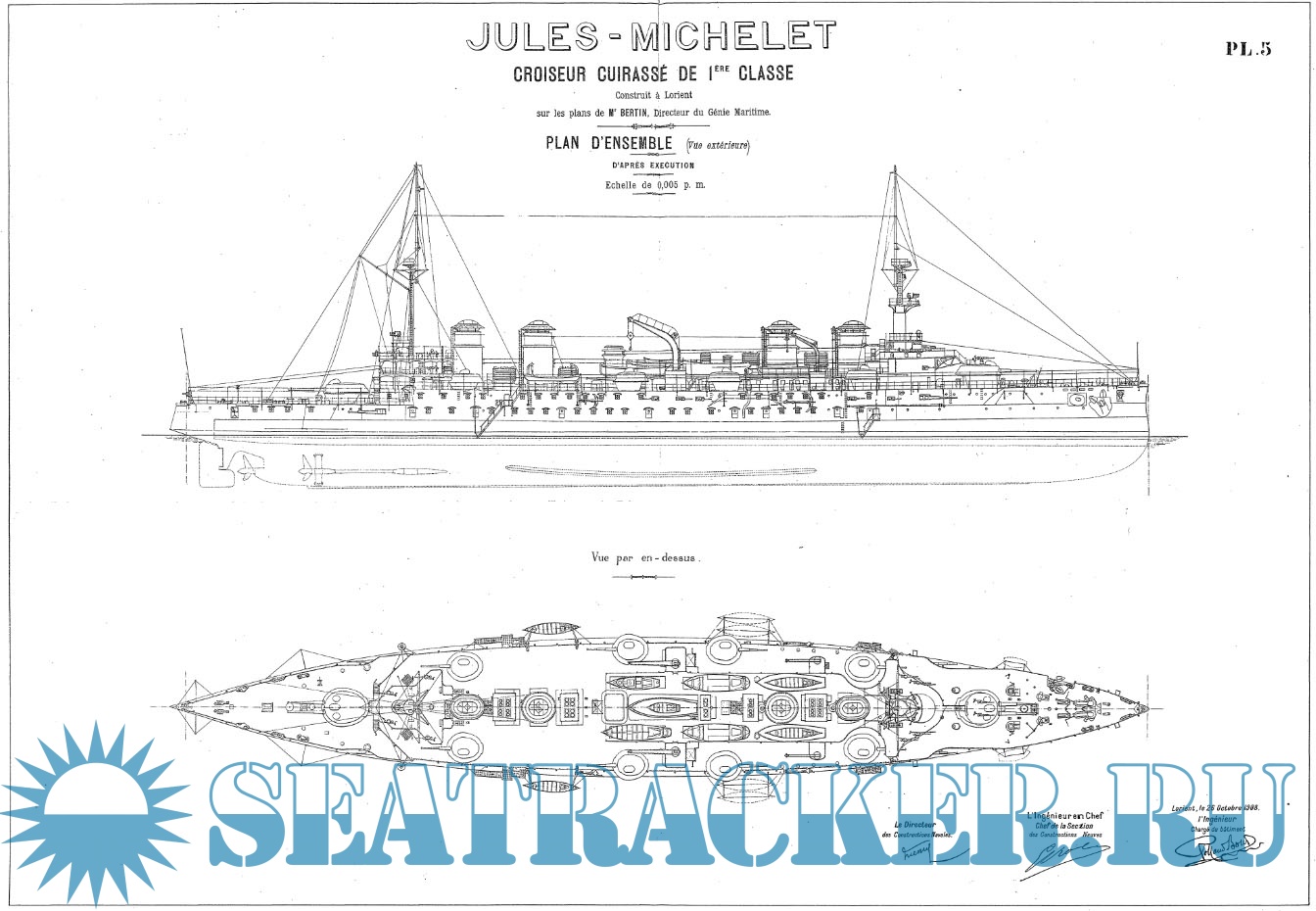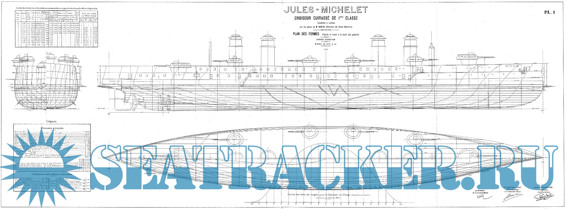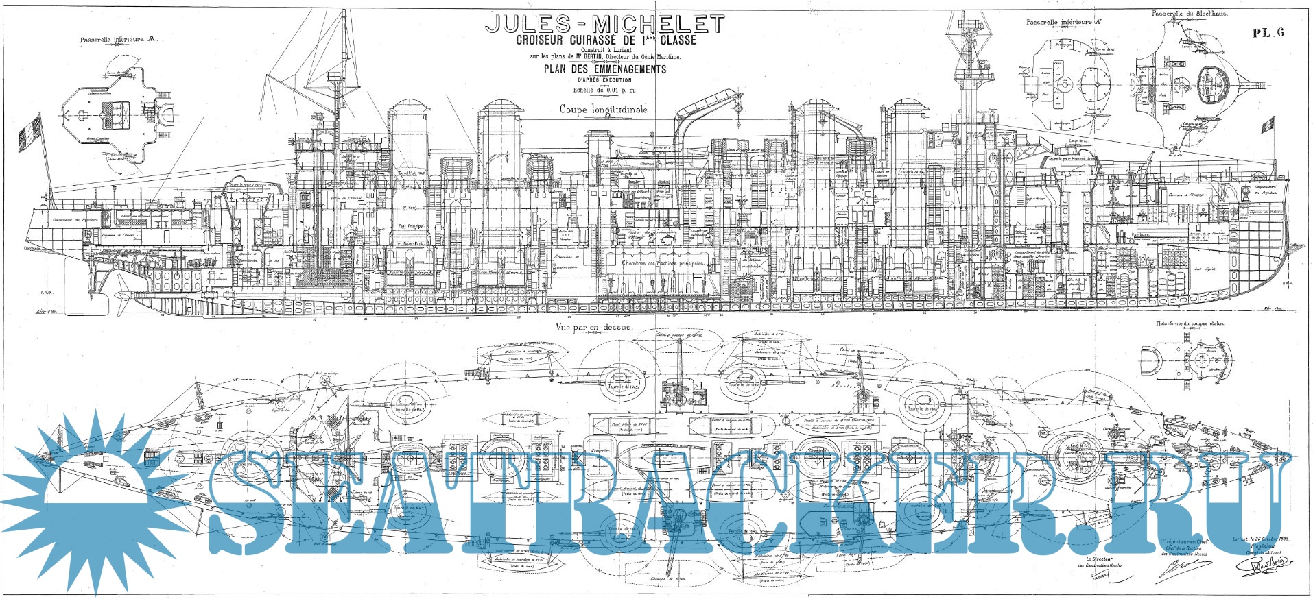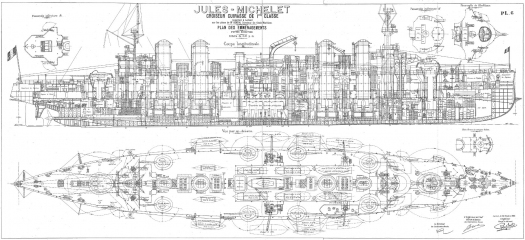 Архивные чертежи крейсера 1-го ранга "JULES MICHELET" (Франция) 1905 год