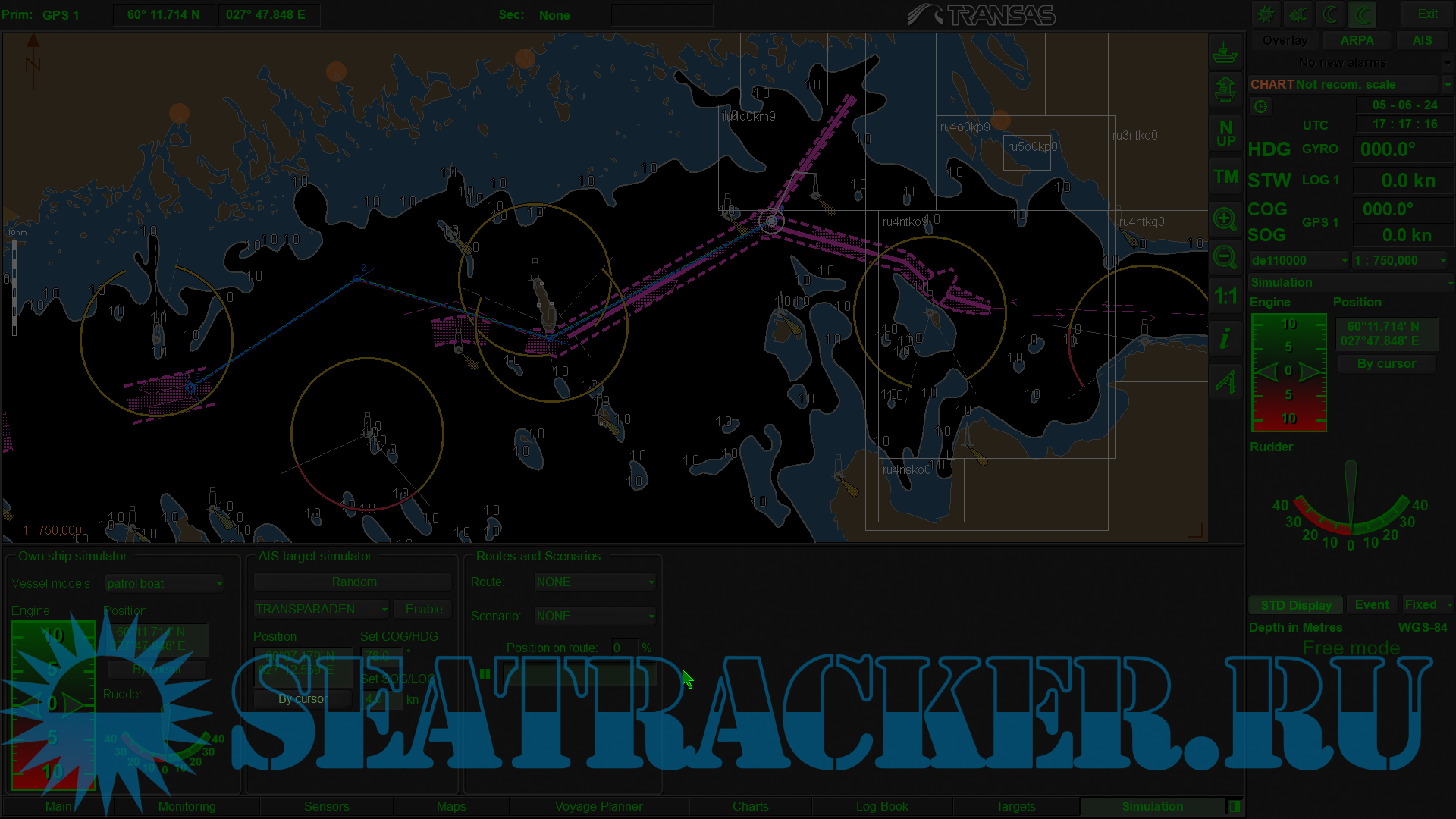 Description: The Transas Demo ECDIS is a free program developed to demonstrate the main ECDIS functionality, and for training purposes. It provides simulation of navigational data: own ship and target motion, radar pictures and ENC chart presets.The Transas Demo ECDIS also the preset scenarios that display full-scale navigational situation on the screen: nautical charts, radar overlay, routes, AIS targets and NAVTEX warnings. ECDIS Сomputer Based Training (ECDIS CBT) is developed in accordance with IMO Model Course 1.27. It is designated both for candidates for certifcation as ofcers in charge of a navigational watch and for experienced nautical ofcers and other persons with responsible duties in navigation work, such as pilots.