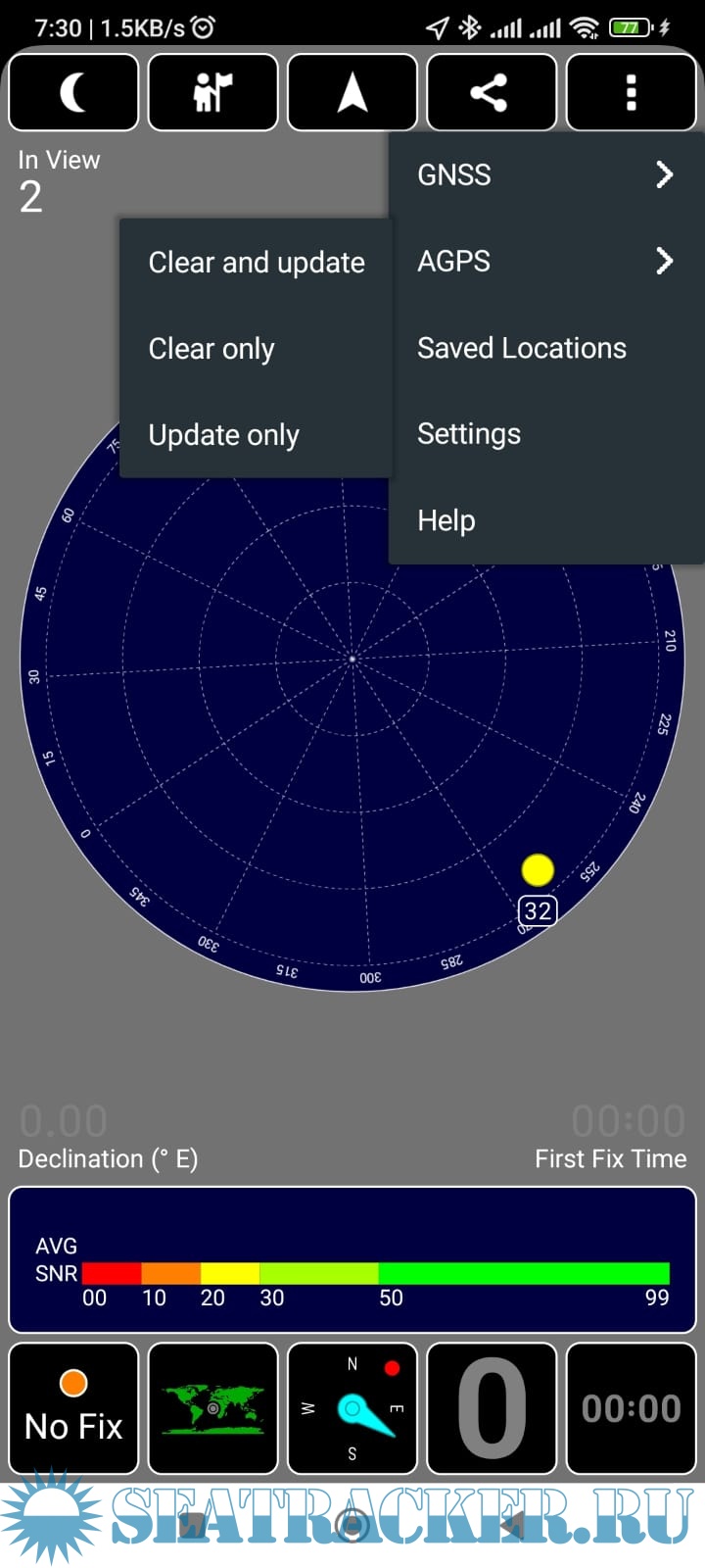 I suggest to start diagnostics of the receiver with a trivial thing - check if it is enabled in the settings. Then update the A-GPS cache and clear it if necessary. The application allows you to calibrate the compass and accelerometer. Note that you will need an internet connection to work.