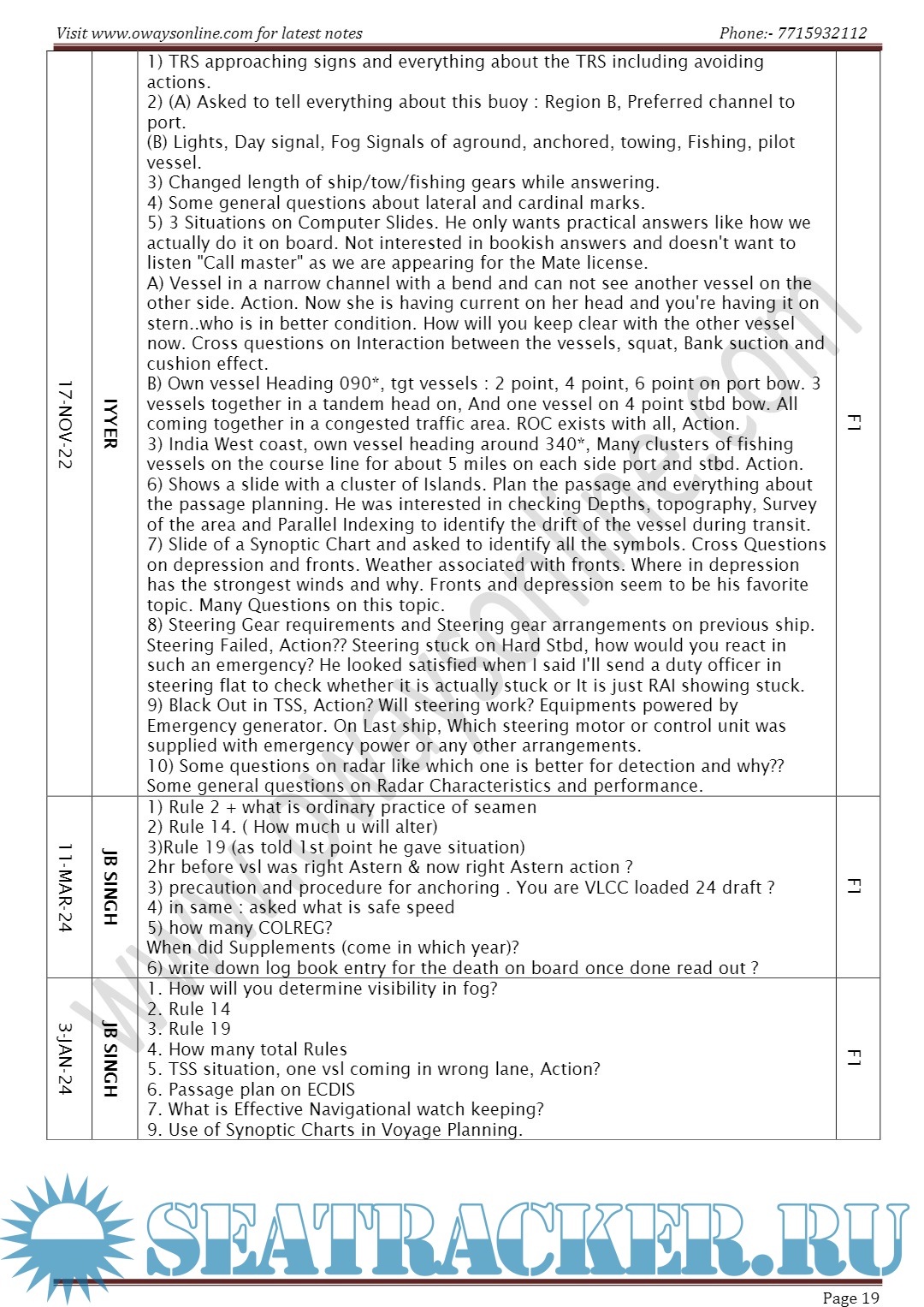 Orals Question Bank (March 2024) for Chief Mate F.G. Mercantile Marine Department (MMD), India…
