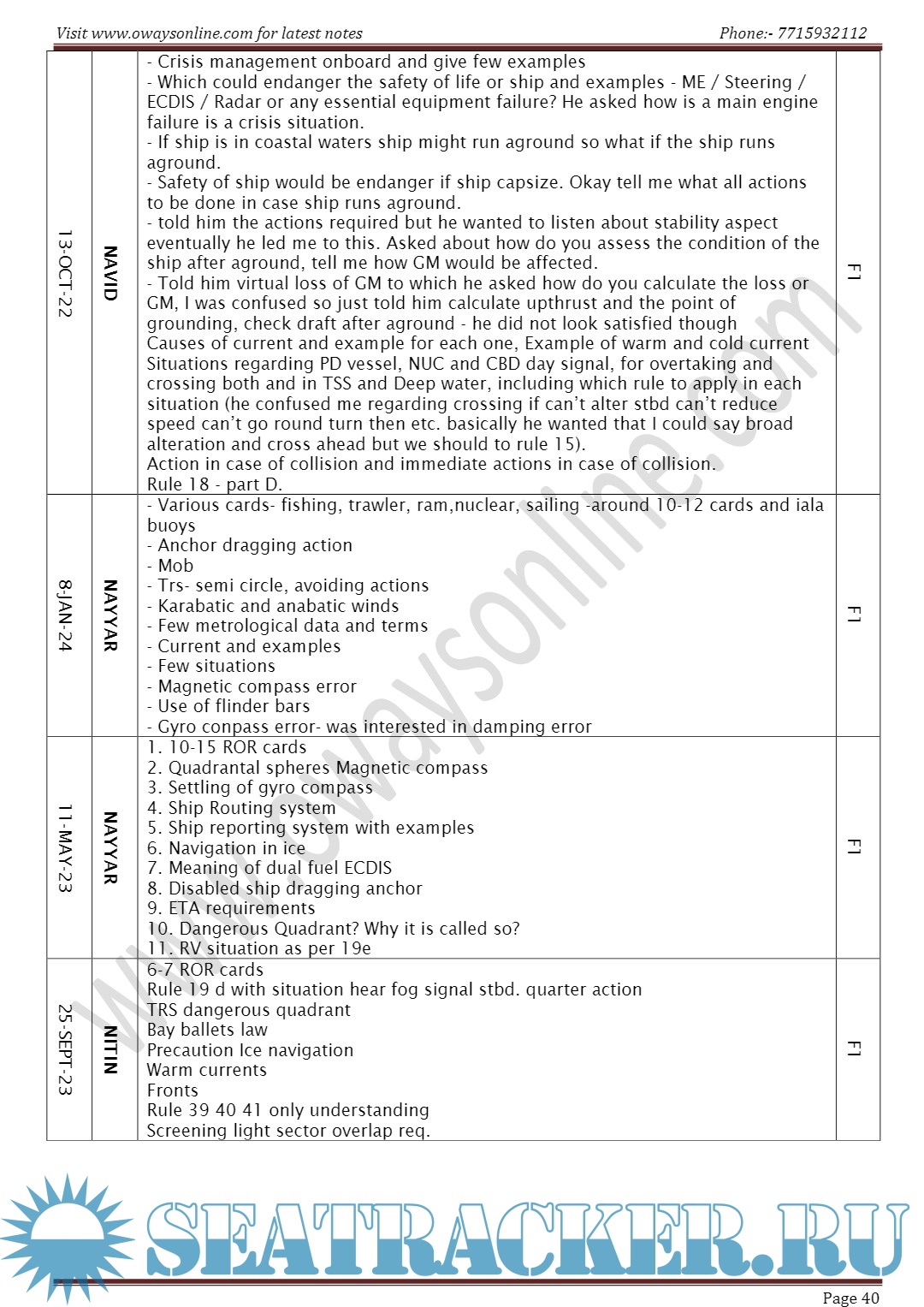 Orals Question Bank (October 2023) for Chief Mate F.G. Mercantile Marine Department (MMD), India…