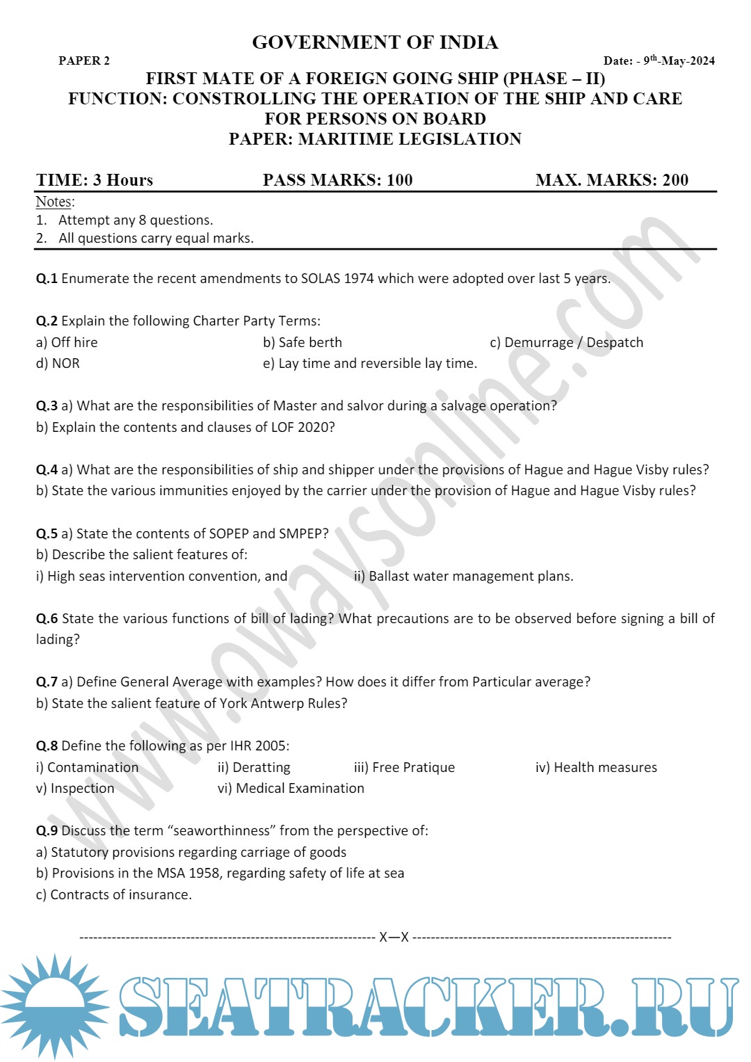 Question Paper Set (May 2024) Phase II (Chief Mate F.G.) Mercantile Marine Department (MMD), India Examinations