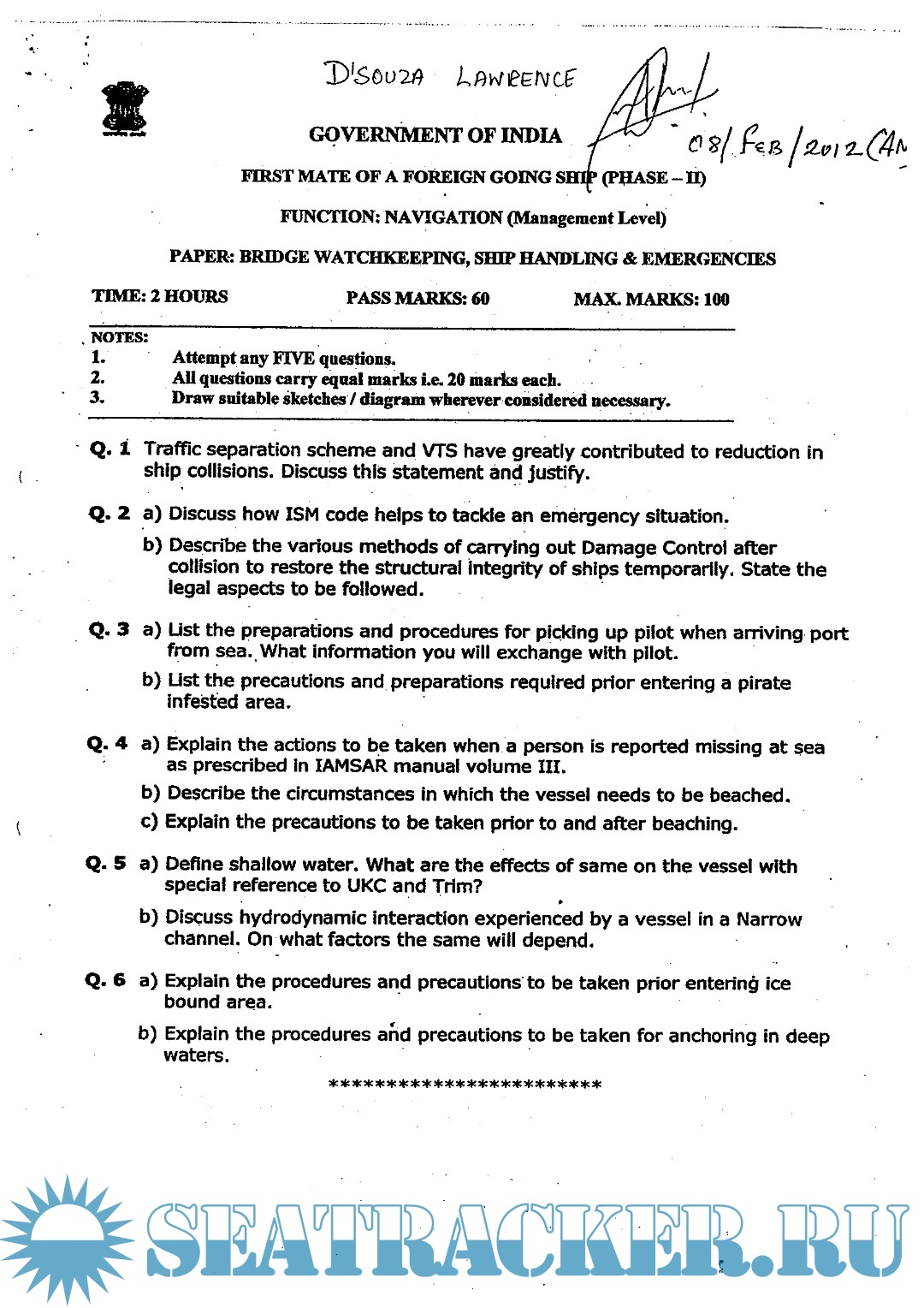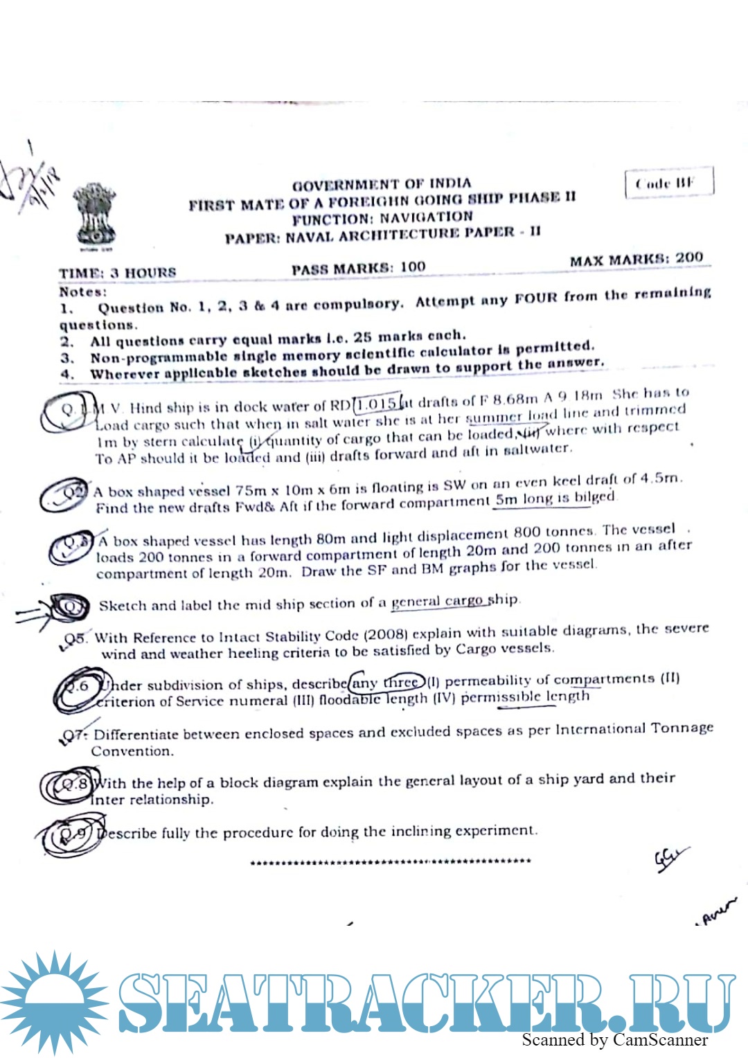 Description: Question paper set for Mercantile Marine Department (MMD), India Exams for Phase II - Chief Mate (F.G.).