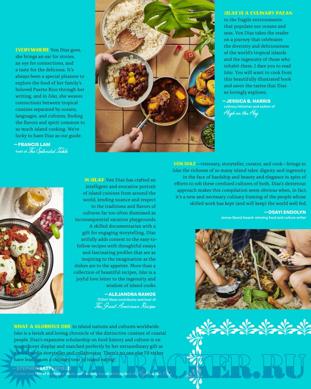 The islands spanning the Indian, Atlantic, and Pacific Oceans are remarkable places, sharing dozens of ingredients and cooking techniques, including marinating, pickling and fermentation, braising and stewing, frying, grilling and smoking, and steaming and in-ground roasting. Bold flavors drip from the edges of each dish with tastes that represent stories of resistance, persistence, and wisdom passed down from generation to generation.