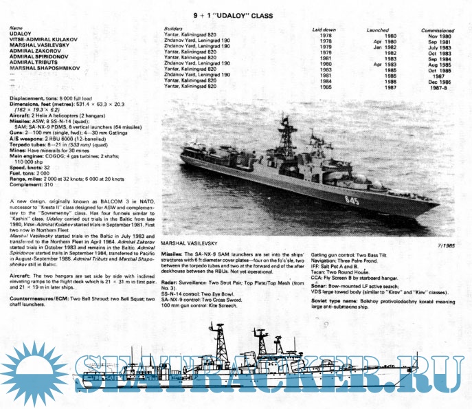 Уже только по этой причине БПК типа “Уда¬лой” заслуживают отдельного рассказа. Но есть и ещё одно немаловажное обстоятельство: эти корабли и чисто внешне красивы, изящны, на¬сыщены вооружением и если учесть жгучий ин¬терес к ним со стороны любителей флота различ¬ных категорий, то такой рассказ становится про¬сто необходимым.