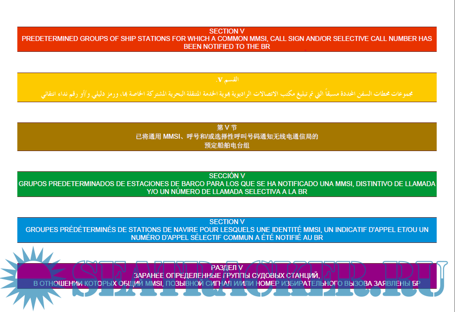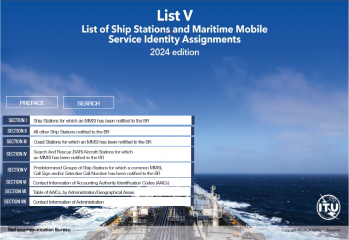 Description: he List of Ship Stations and Maritime Mobile Service Identity Assignments (List V) is a service publication prepared and issued, once a year, by the International Telecommunication Union (ITU), in accordance with provision no. 20.8 of the Radio Regulations (RR). As stipulated in Appendix 16 to the RR, this List shall be provided to all ship stations for which a Global Maritime Distress and Safety System (GMDSS) installation is required by international agreement.