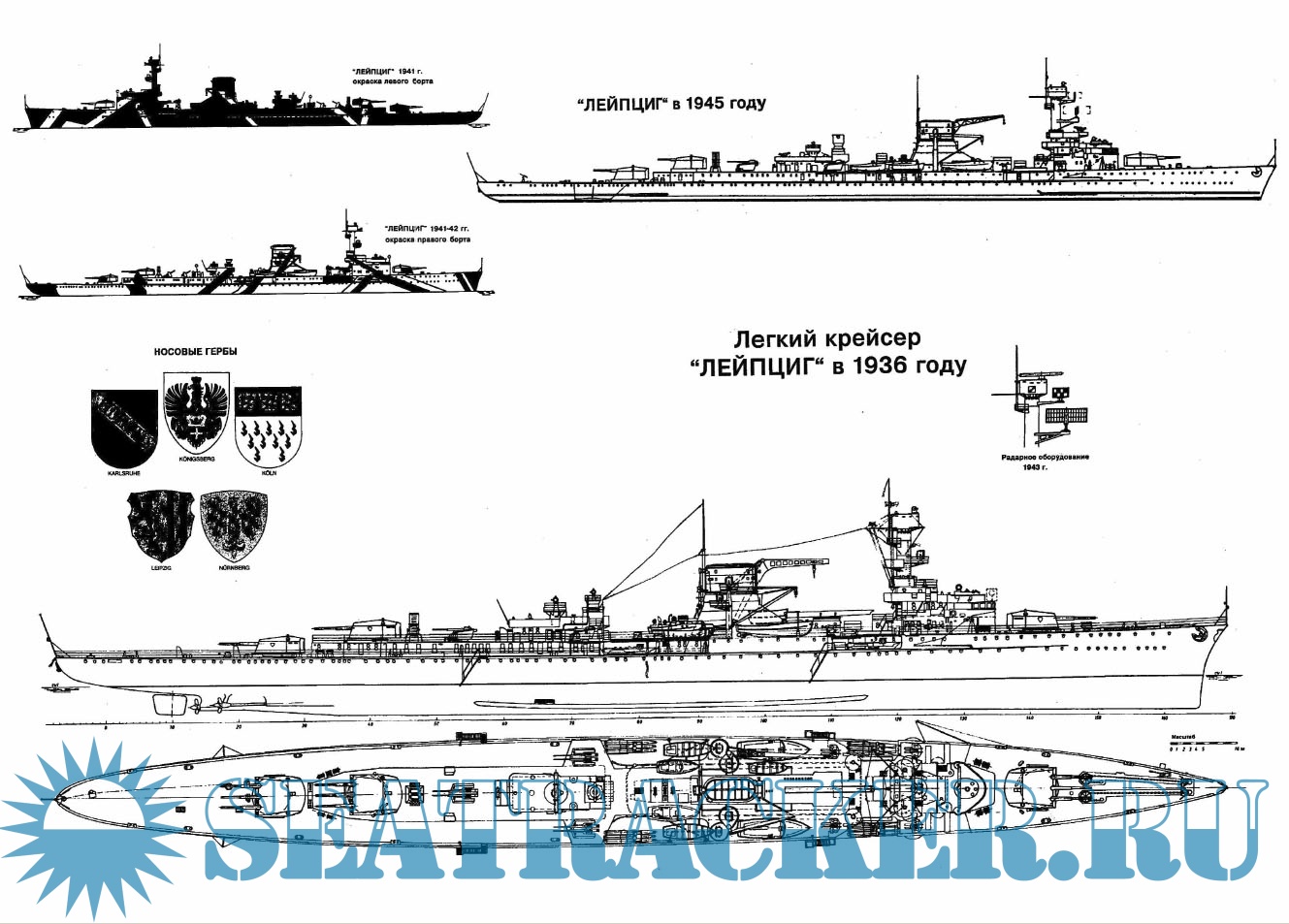 Германские легкие крейсера Второй Мировой войны "Эмден”, "Кенигсберг”, "Дрезден", "Карлсруэ”, "Нюрнберг”