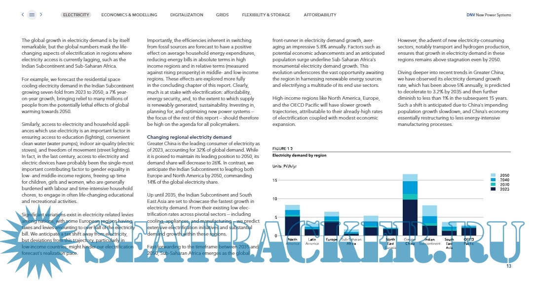 Description: This report expands upon electricity forecast of our Energy Transition Outlook,2023. Experts in DNV’s Energy Systems unit have contributed additional material to this report in the fields of demand modelling, grid operations, digitalization and AI, and new market models and funding mechanisms for flexibility. In this report we deepen coverage in particular of: