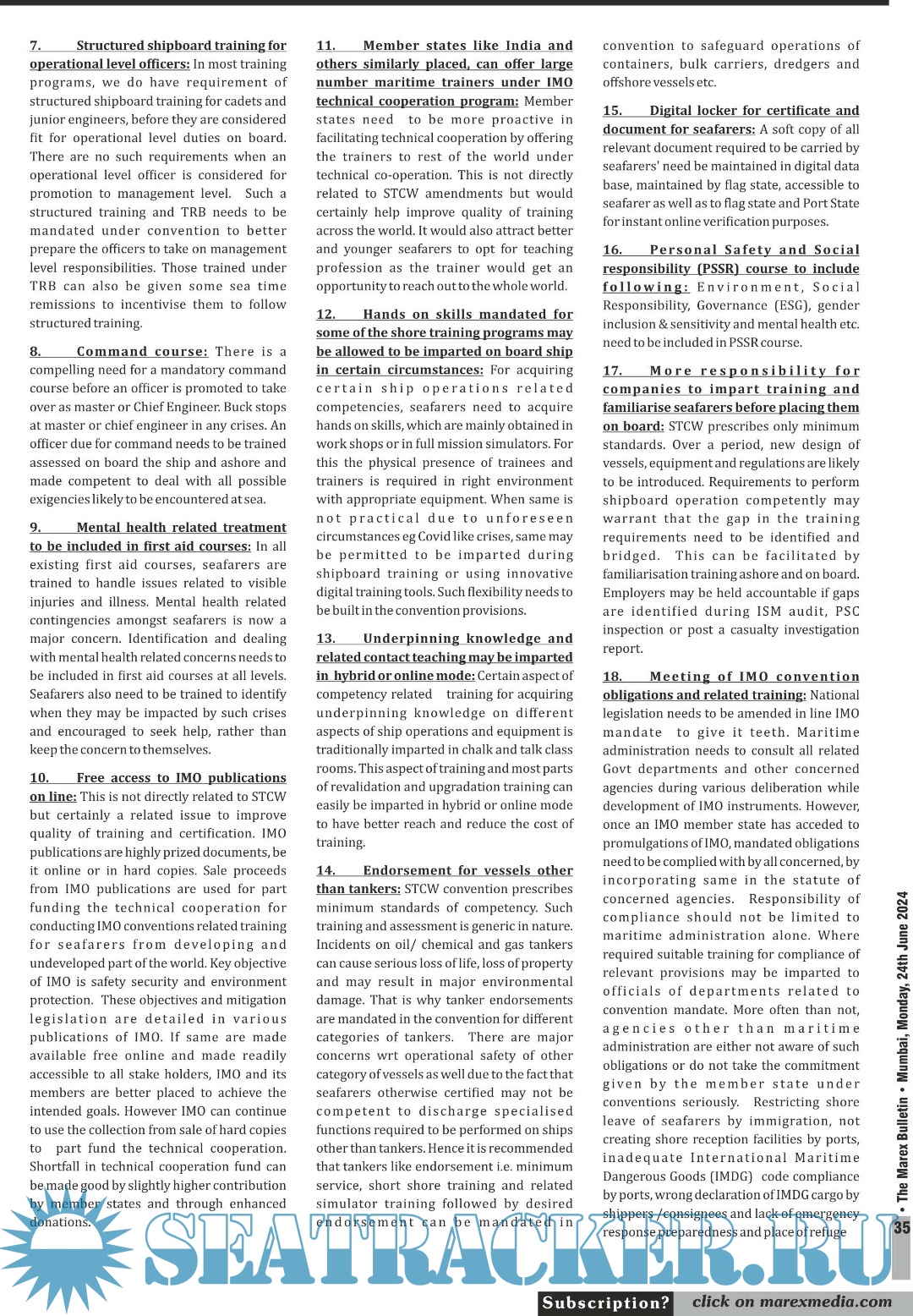 Year: 2024 Language: English Author: Marex India Genre: Periodical (magazine) Edition: Vol.XXIV | No. 51/24 Format: PDF Quality: eBook Pages count: 44 Description: The No. 1 Twice weekly employment magazine for Seafarers. The Leading magazine for seafarers to locate Ship-board Employment opportunities, Training Institutes, Shipping companies. Online version: https://issuu.com/marexmediapvtltd